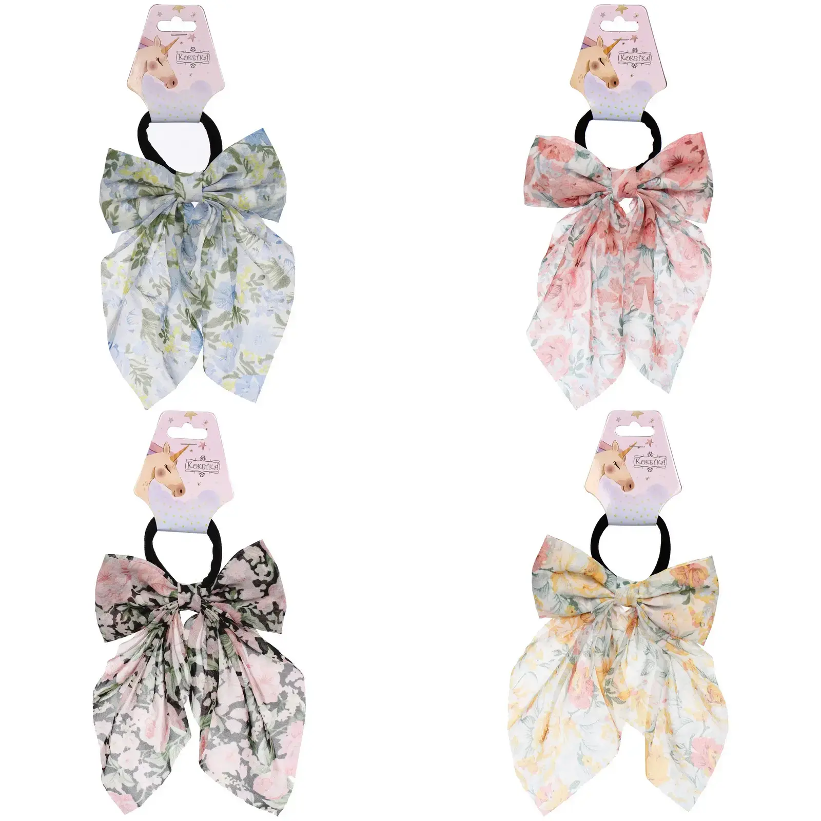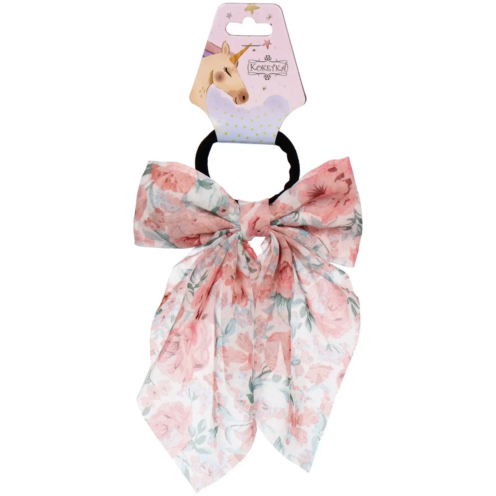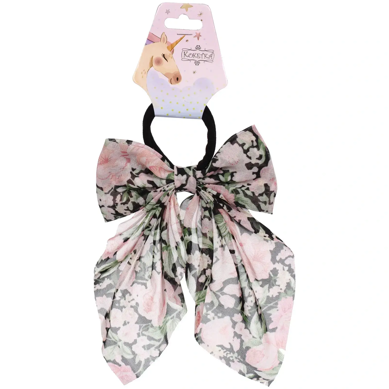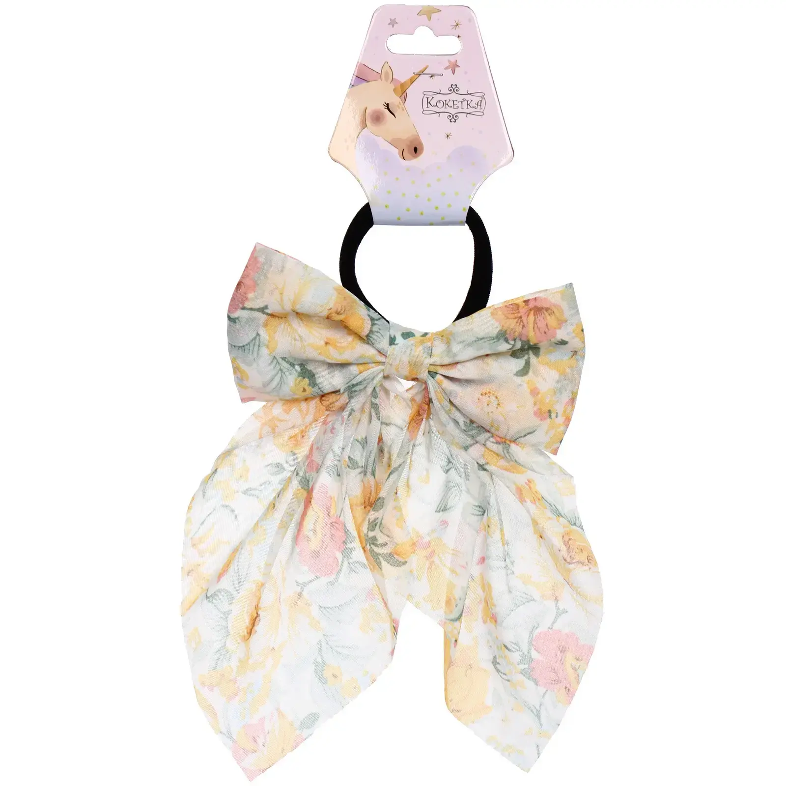 Размер резинки составляет 5 см в диаметре, а бантики выполнены из легкого текстиля, что делает их идеальными для создания объемных причесок. Резинка представлена в четырех цветах: светло-голубом, розовом, черном и желтом, что позволяет выбрать подходящий вариант для любого стиля. Упаковка оформлена в пастельных тонах с изображением единорога, что делает ее отличным подарком для юных модниц.