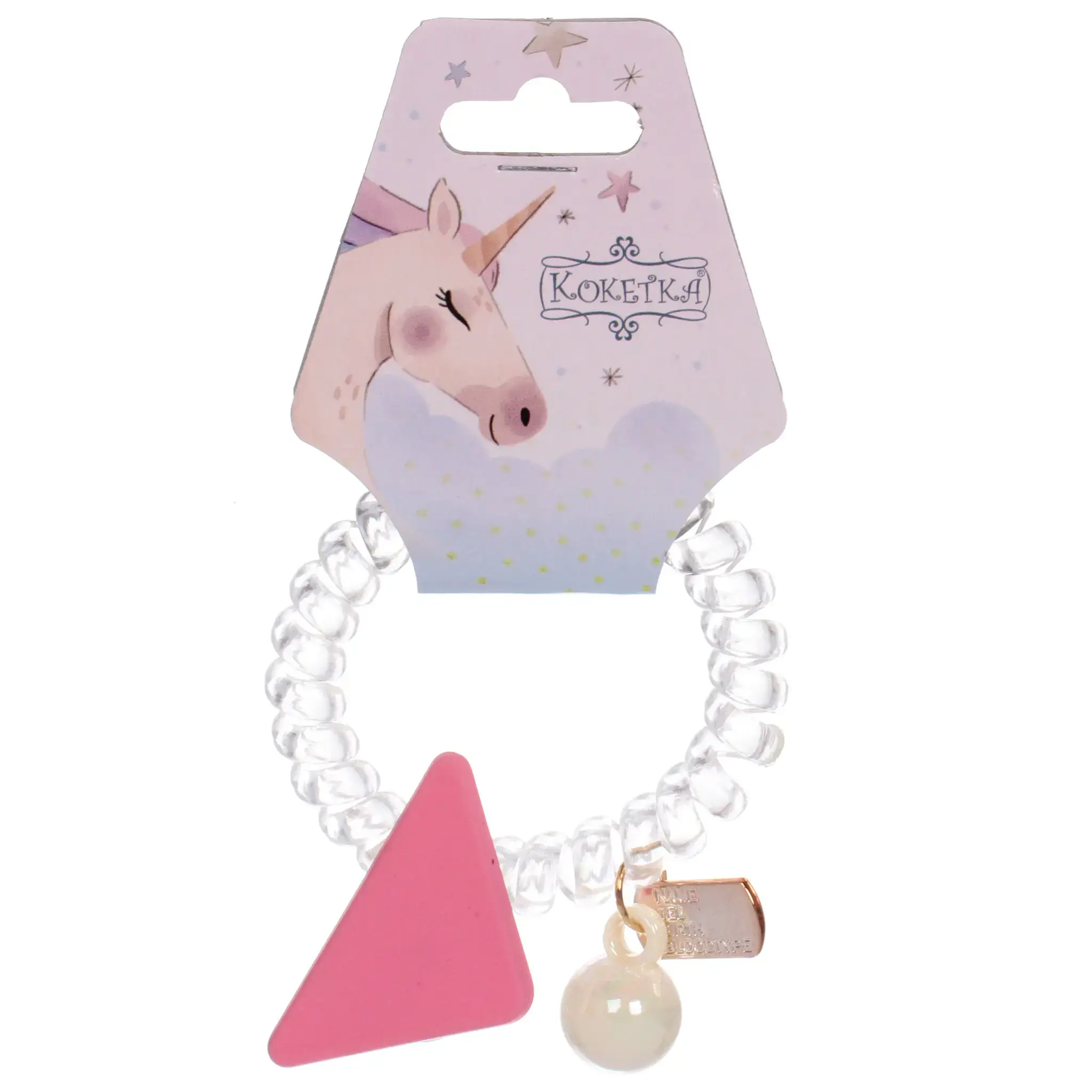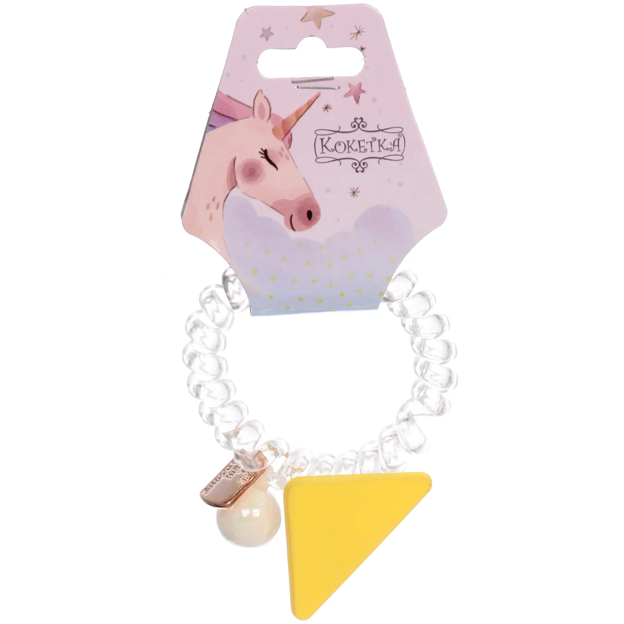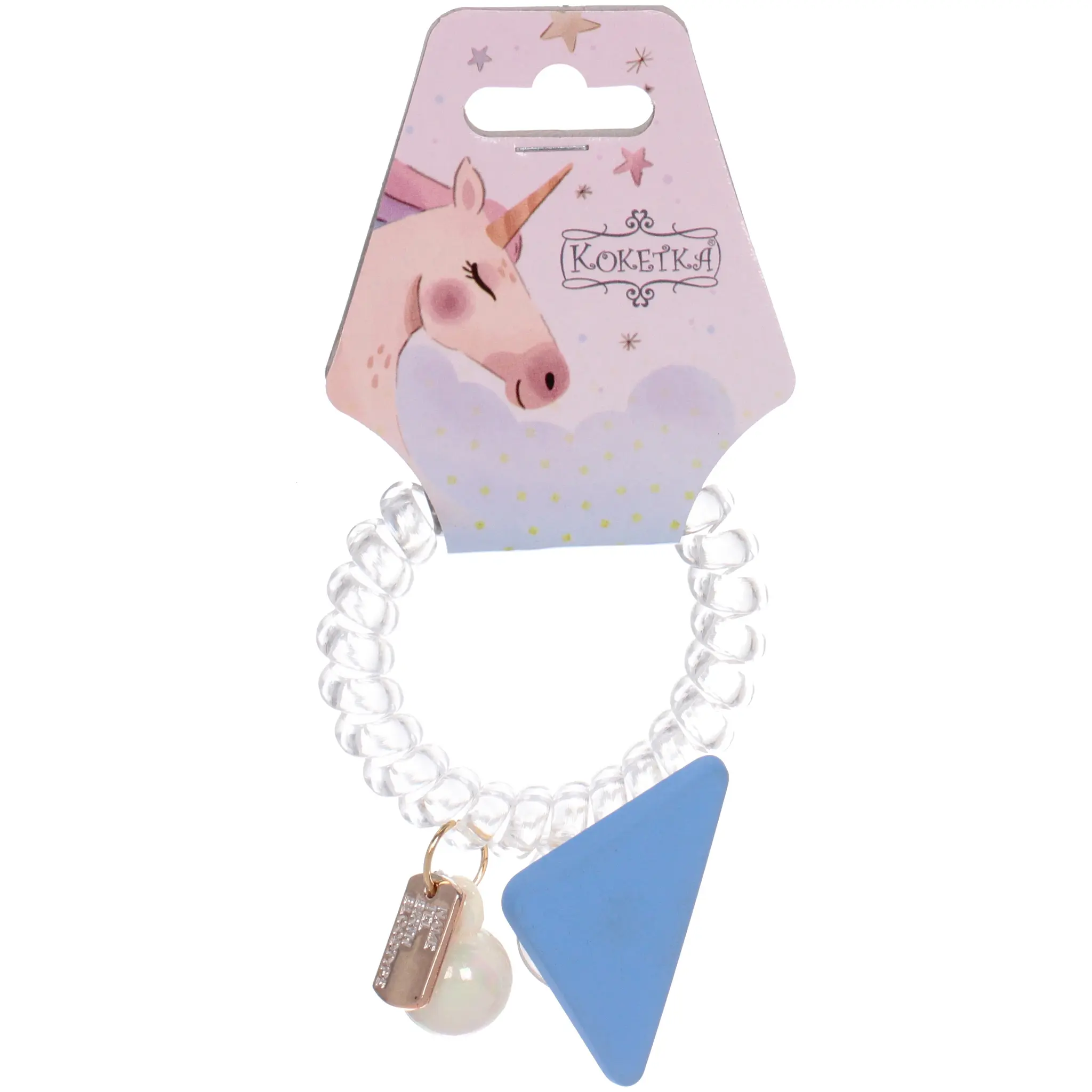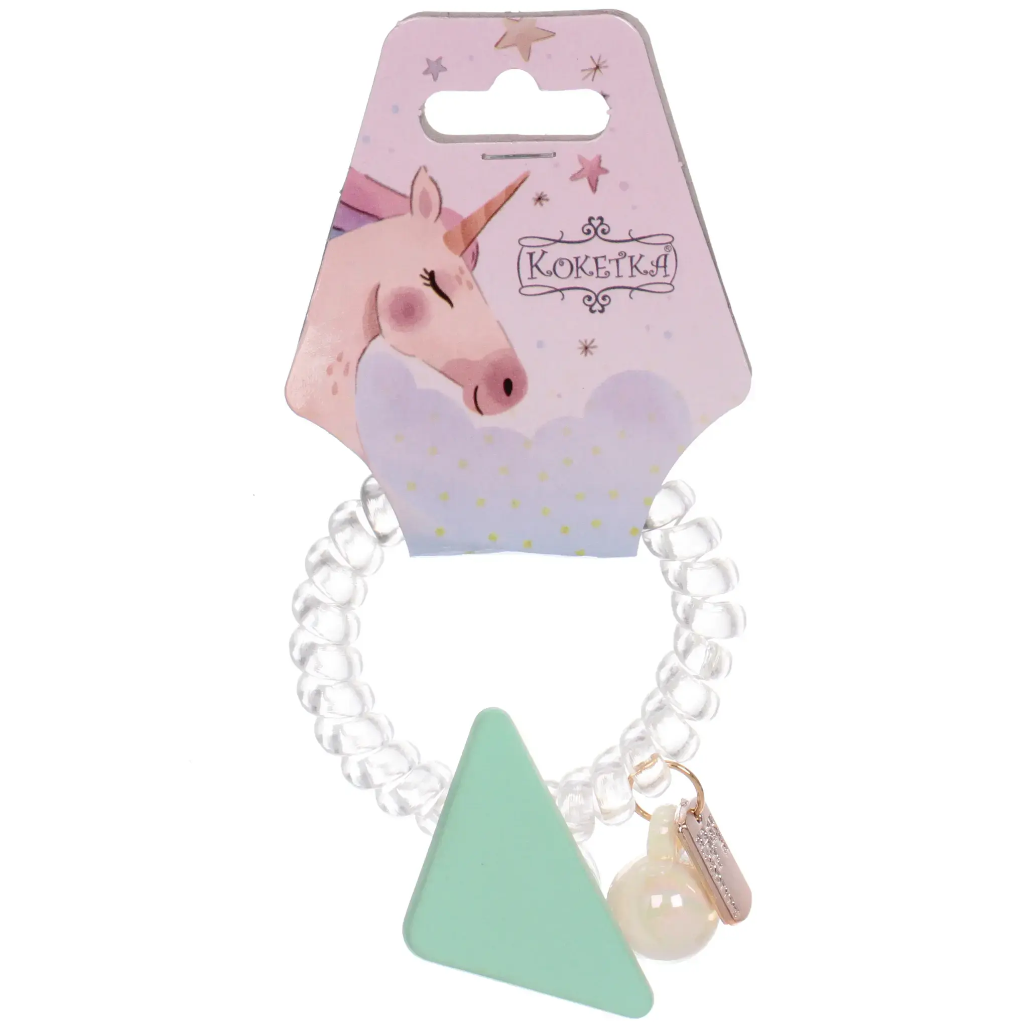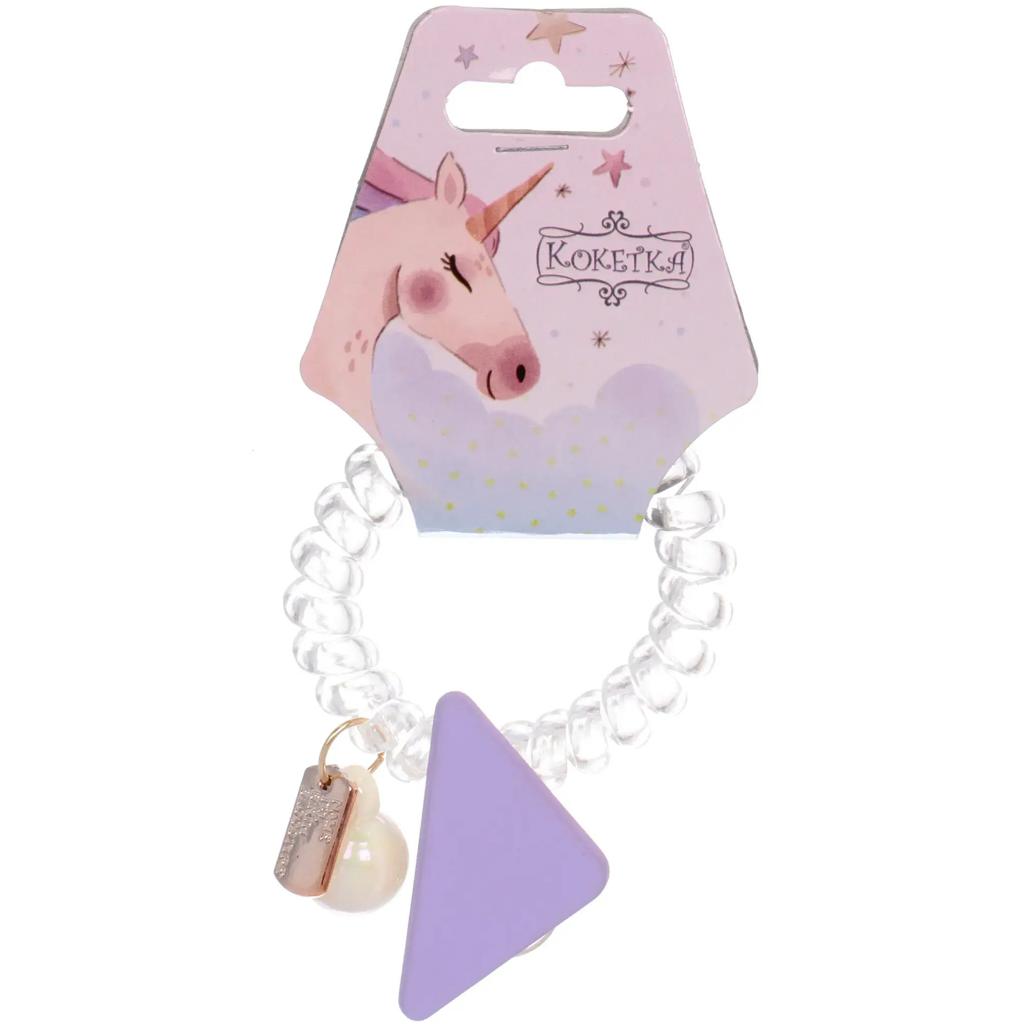 Резинка имеет диаметр 5,5 см и выполнена из качественного силикона, что гарантирует долговечность и практичность. Она не только стильно выглядит, но и обеспечивает надежную фиксацию волос, не оставляя следов. Упаковка оформлена в пастельных тонах с изображением единорога, что делает её отличным подарком для маленьких модниц.