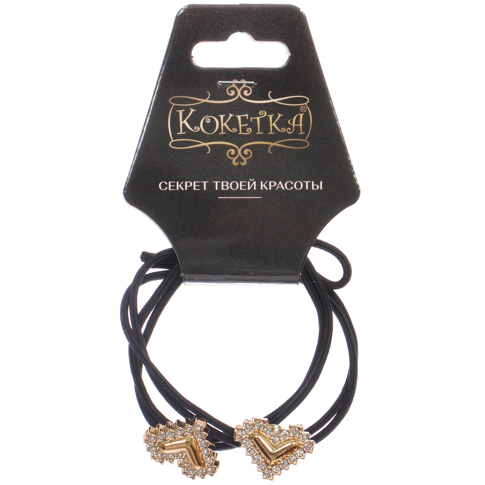 Главным украшением каждой резинки является декоративный элемент в форме сердца. Декор выполнен из золотистого металла и инкрустирован мелкими прозрачными стразами, которые мягко переливаются при любом освещении. В центральной части каждого сердца расположен объемный золотистый элемент в форме галочки, придающий аксессуару современный и динамичный вид. Компактный размер декоративного элемента 2х1,5 см выглядит эстетично и не перегружает прическу.