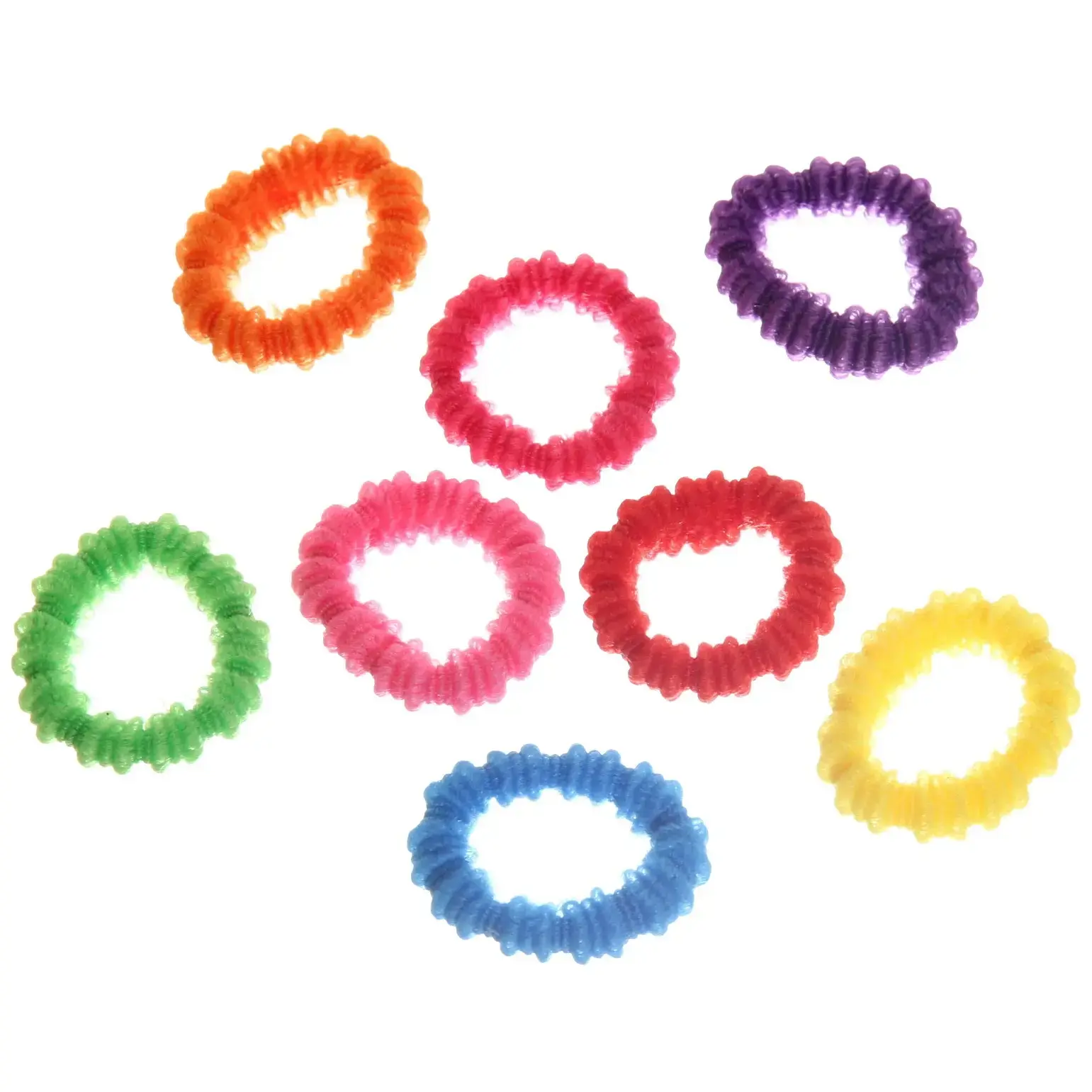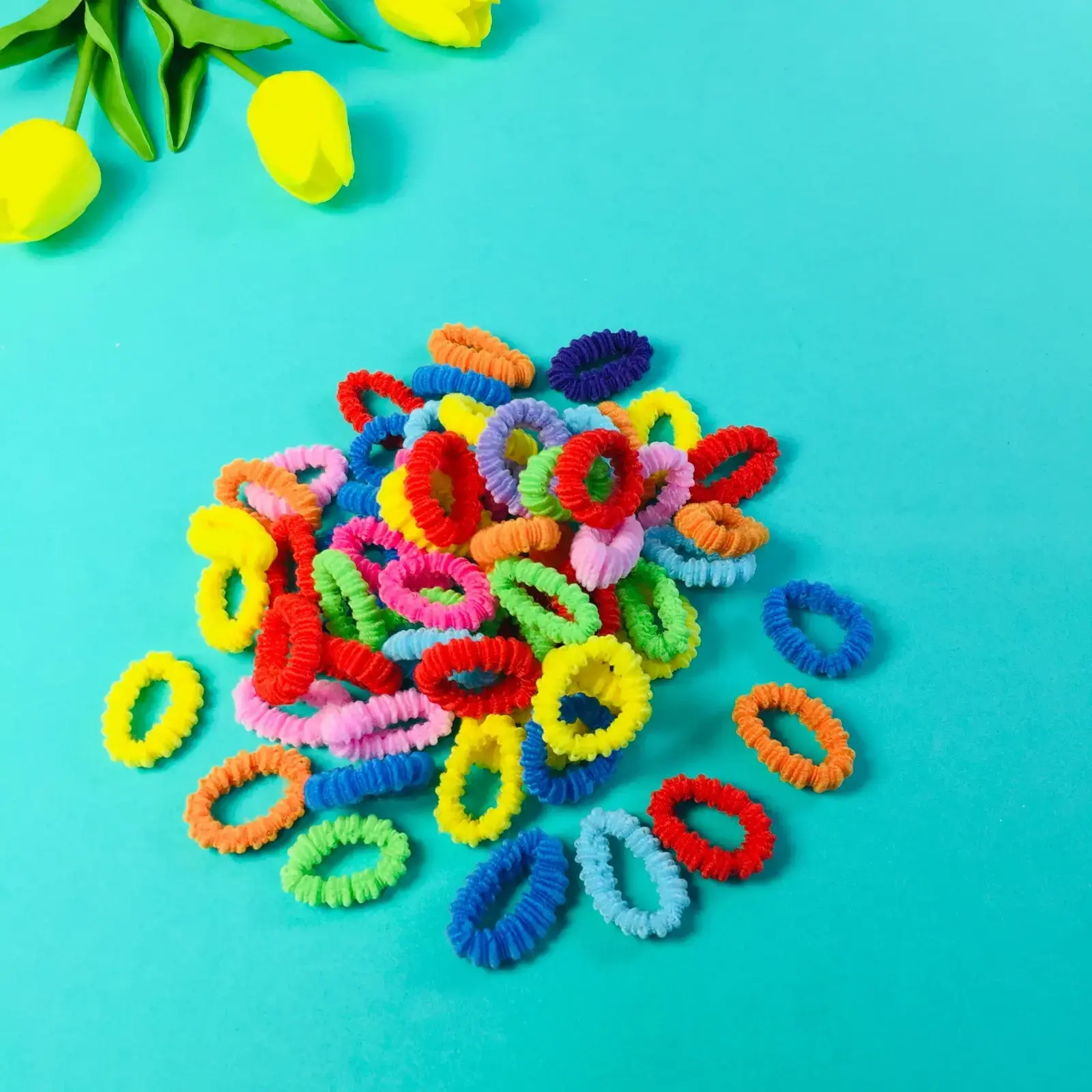 Размер каждой резинки составляет 2,7 см в диаметре, что делает их идеальными для фиксации волос любой длины. Они представлены в различных цветах: красный, зеленый, синий, желтый, фиолетовый и розовый, что позволяет вам экспериментировать с образами. Упаковка содержит 100 резинок, что делает этот набор отличным выбором для тех, кто любит разнообразие.