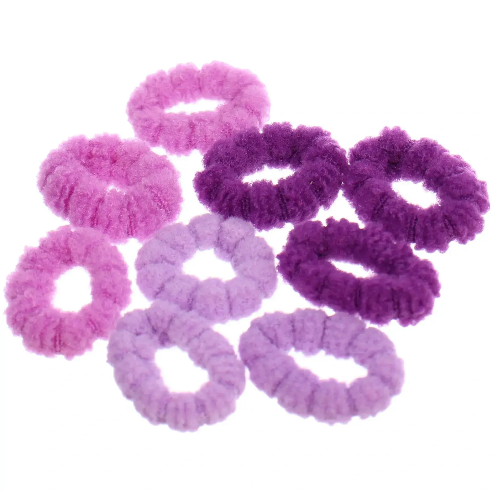 Размер резинок составляет 2 см в диаметре, что делает их идеальными для создания аккуратных причесок. Они представлены в различных оттенках фиолетового, что добавляет яркости и разнообразия в ваш образ. Упаковка выполнена в ярком дизайне с элементами, которые поднимут настроение и сделают процесс использования еще более приятным.