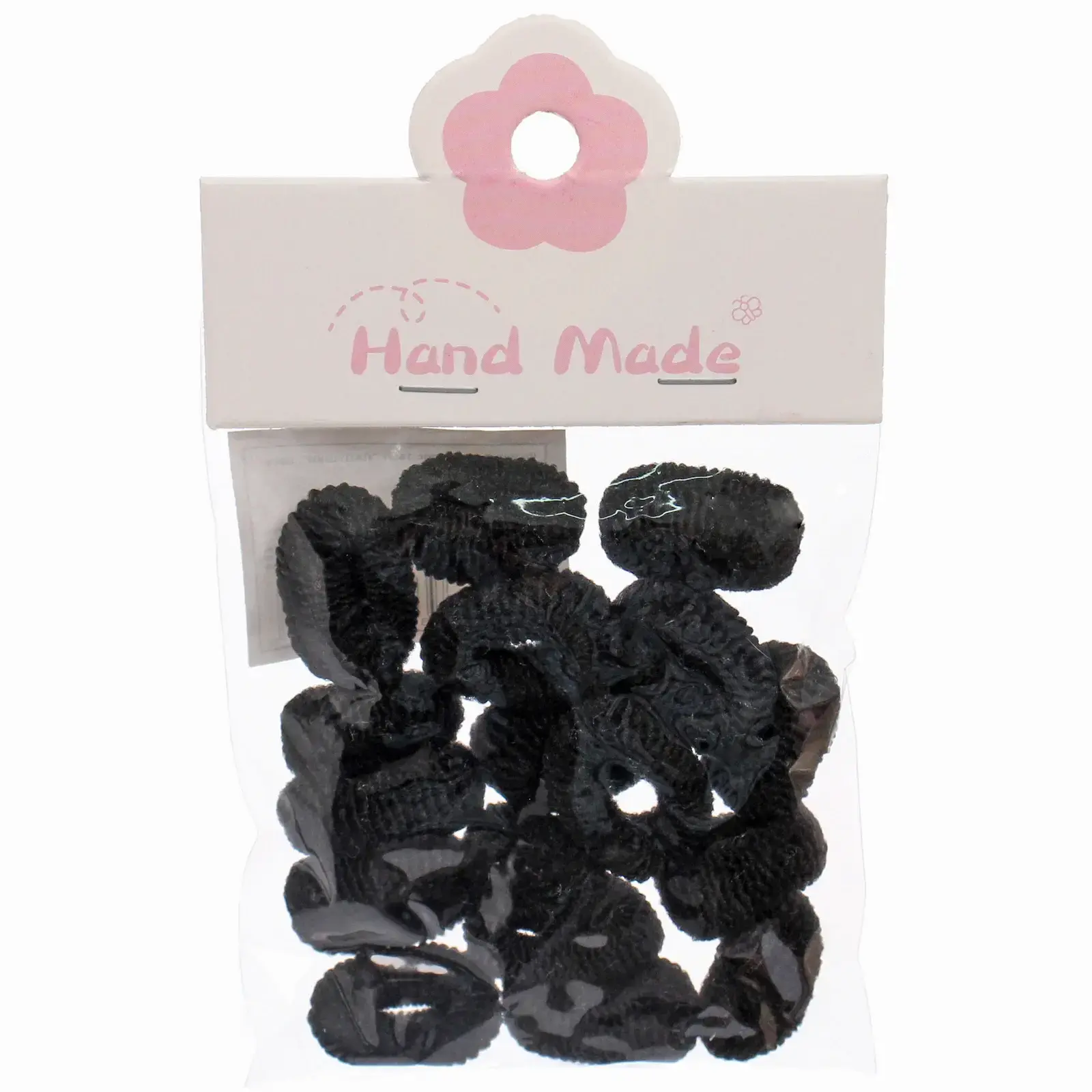 Каждая резинка имеет диаметр 2 см, что делает их компактными и удобными для хранения. Упаковка выполнена в прозрачном пакете с картонной подложкой, что позволяет легко видеть содержимое. Эти резинки — отличный выбор для тех, кто ценит качество и стиль в аксессуарах для волос.