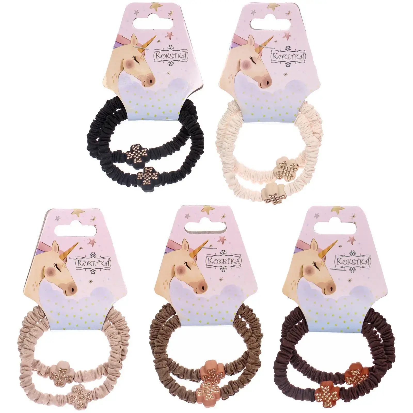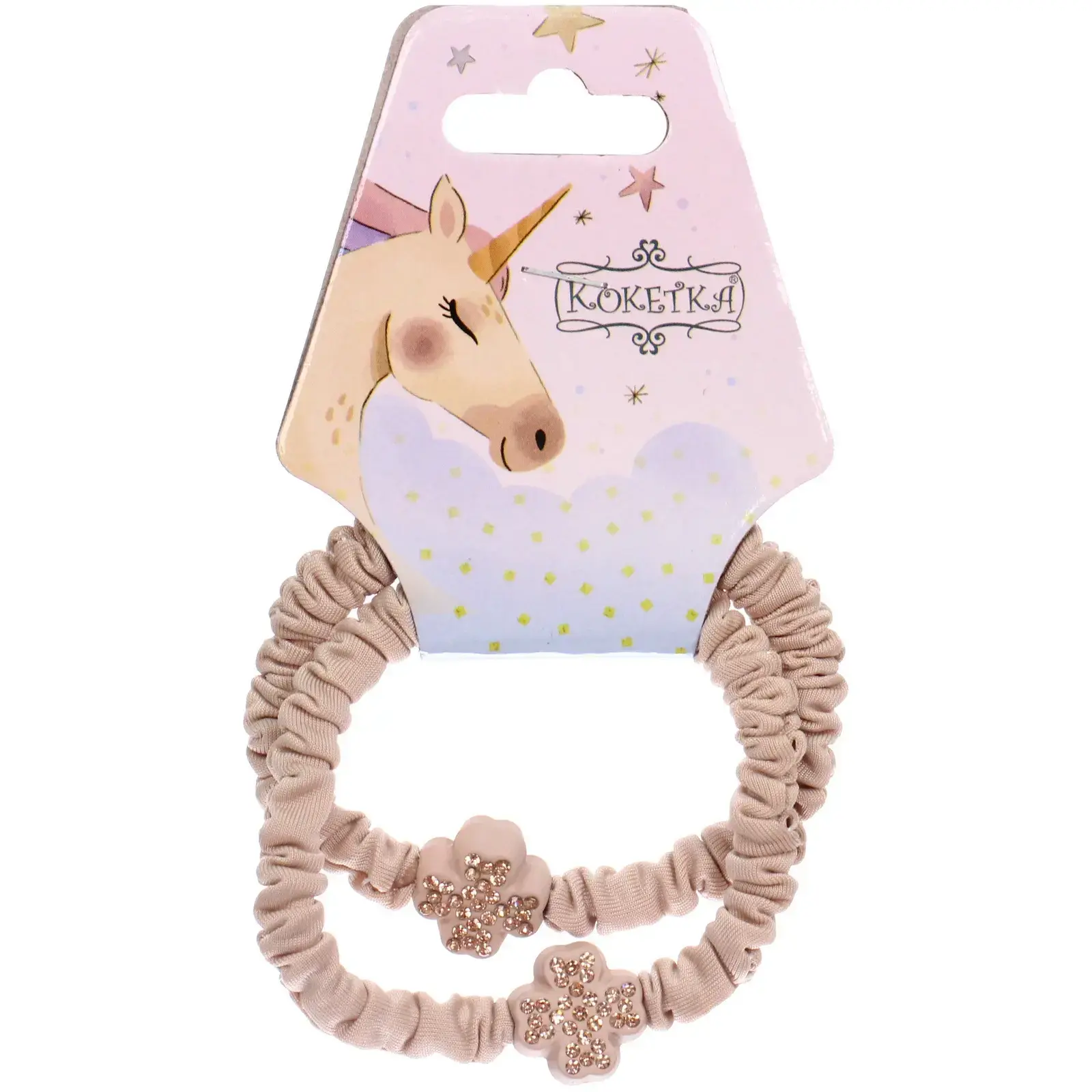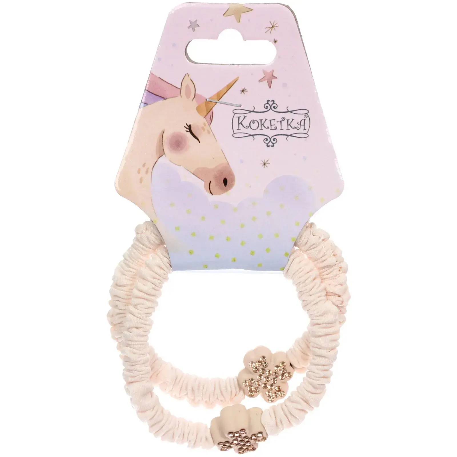 Каждая резинка имеет диаметр 5 см, что делает их универсальными для использования. Они украшены декоративными элементами в виде цветков, что добавляет им оригинальности и привлекательности. Упаковка оформлена в пастельных тонах с изображением единорога, что делает ее идеальной для подарка.