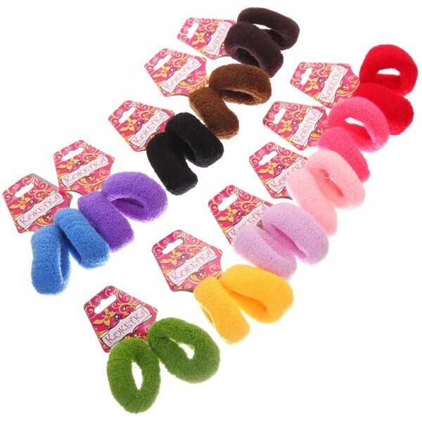 Размер каждой резинки составляет 7х3,5 см, что делает их удобными для использования. Они представлены в шести цветах: черном, коричневом, красном, розовом, фиолетовом, голубом, желтом и зеленом. Эти резинки станут отличным дополнением к вашей коллекции аксессуаров для волос.