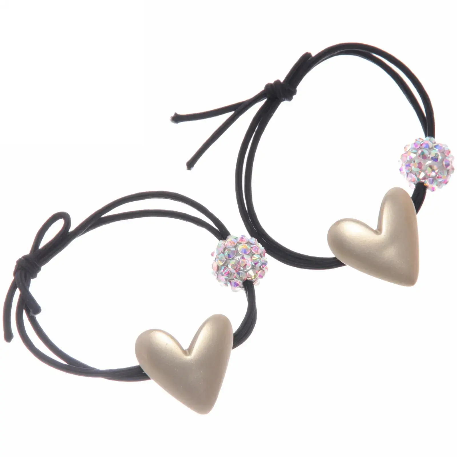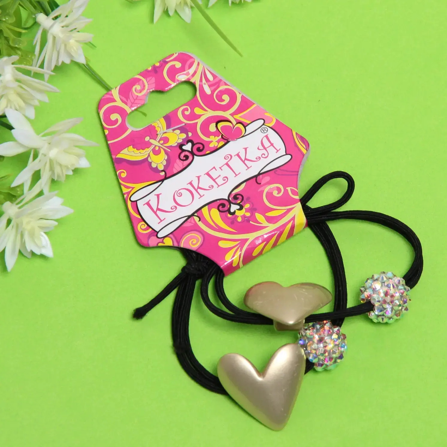 В комплект входят две резинки диаметром 5 см, выполненные в черном цвете с золотистыми сердечками. Упаковка имеет розовый цвет с узорчатым дизайном, что делает ее отличным подарком для близких. Не упустите возможность добавить эти стильные аксессуары в свою коллекцию!