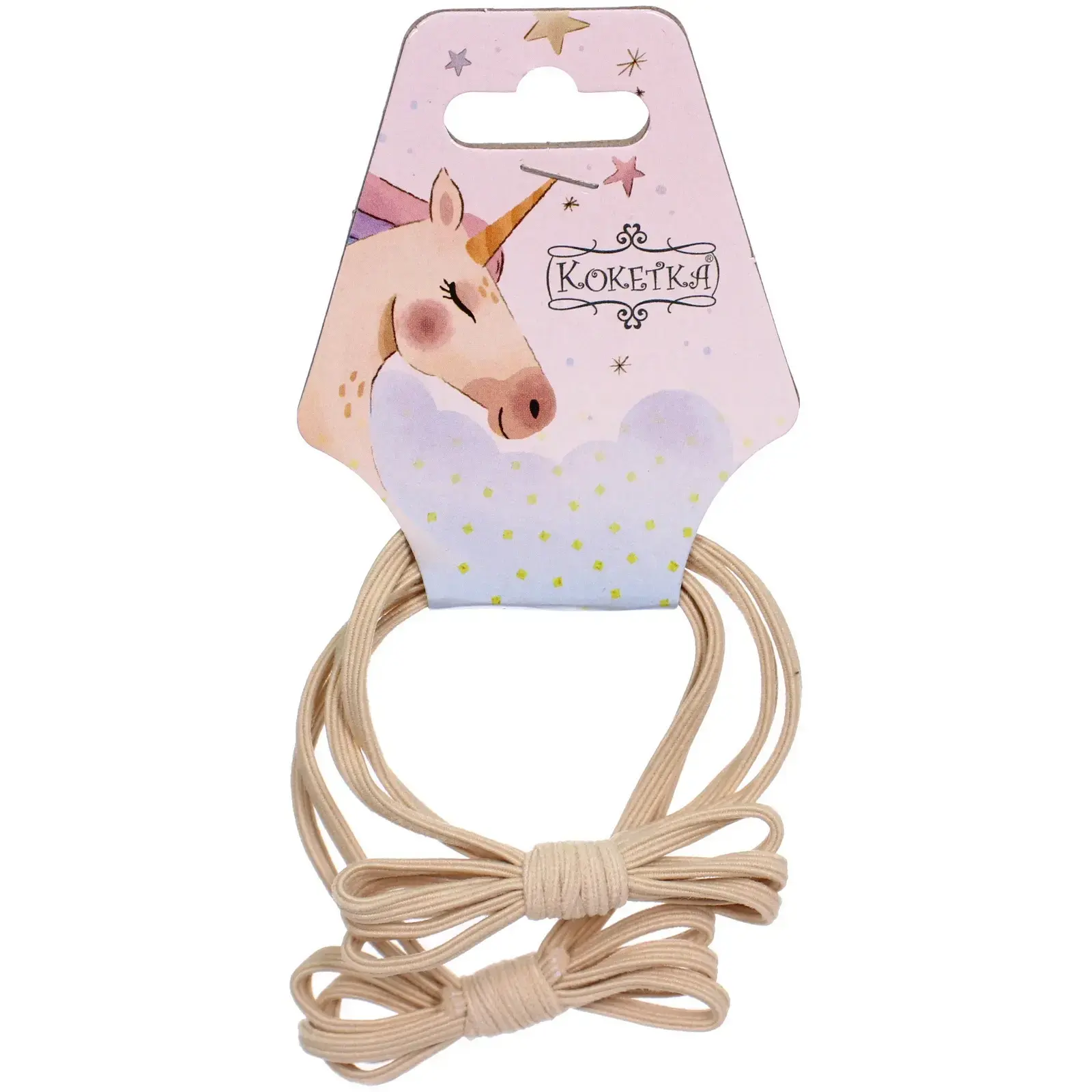 Резинки имеют бежевый цвет и диаметр 5,5 см, что делает их универсальными для различных причесок. Изготовлены из текстиля, они мягкие и приятные на ощупь, не повреждают волосы и не вызывают дискомфорта при ношении. Упакованы в яркую картонную подложку с изображением единорога, что делает их отличным подарком для маленьких модниц.