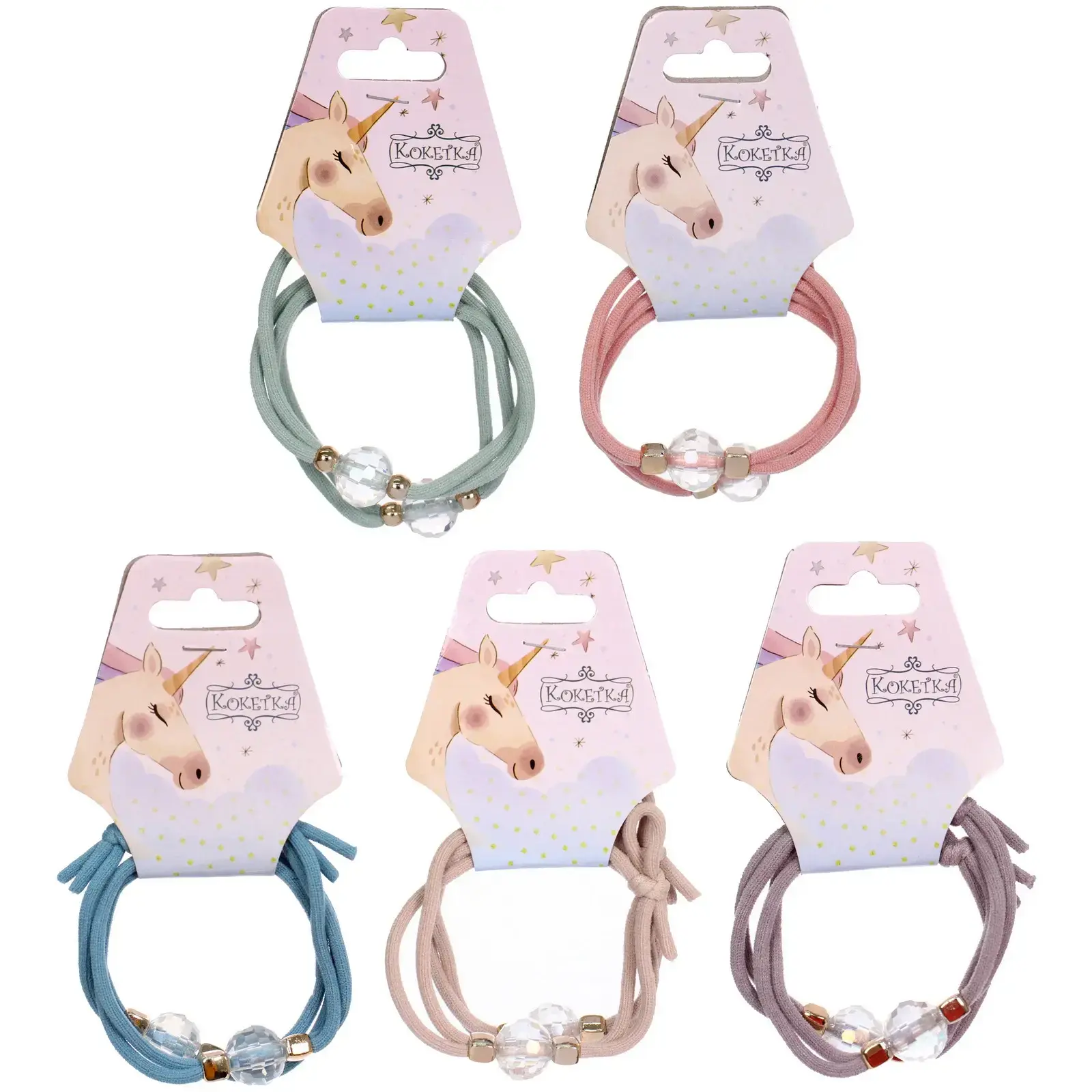 Размер каждой резинки составляет 5,5 см в диаметре, что делает их универсальными для использования. Изготовлены из прочного пластика и текстиля, они обеспечивают комфорт и надежность. Упаковка оформлена в пастельных тонах с изображением единорога, что делает их отличным подарком для девочек.