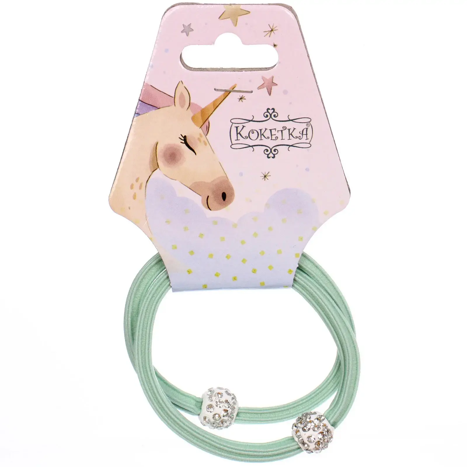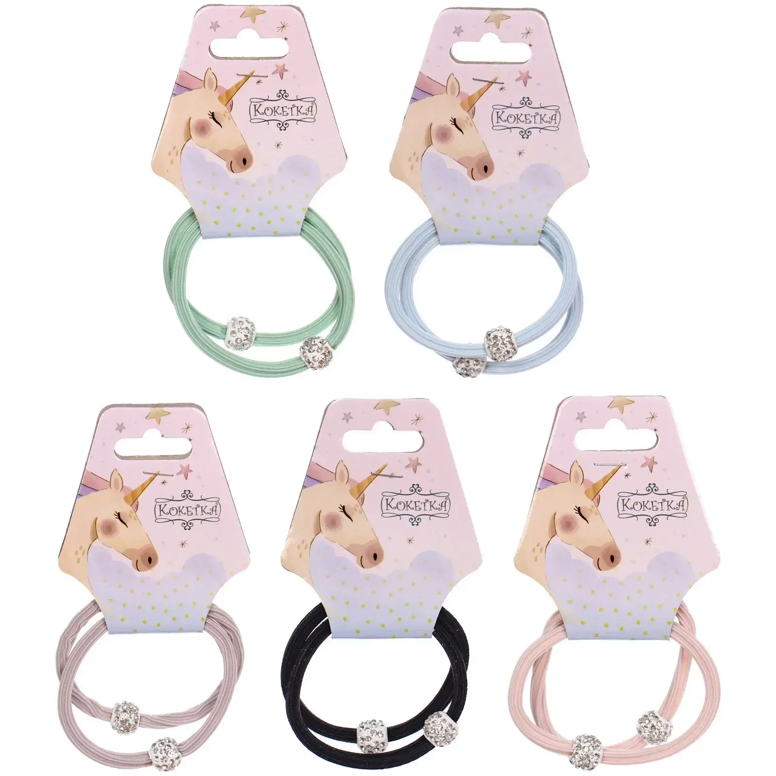 Размер каждой резинки составляет 5,5 см в диаметре, что делает их универсальными для различных причесок. Упаковка оформлена в пастельных тонах с изображением единорога, что делает её привлекательной для детей и подростков. Резинки упакованы по две штуки, что позволяет всегда иметь запас под рукой.