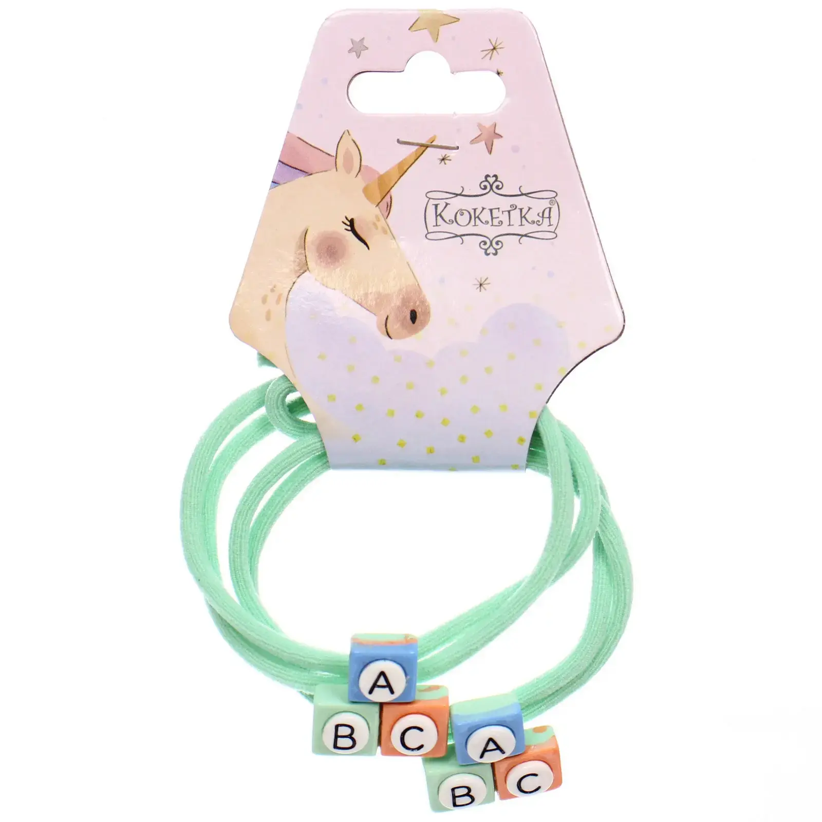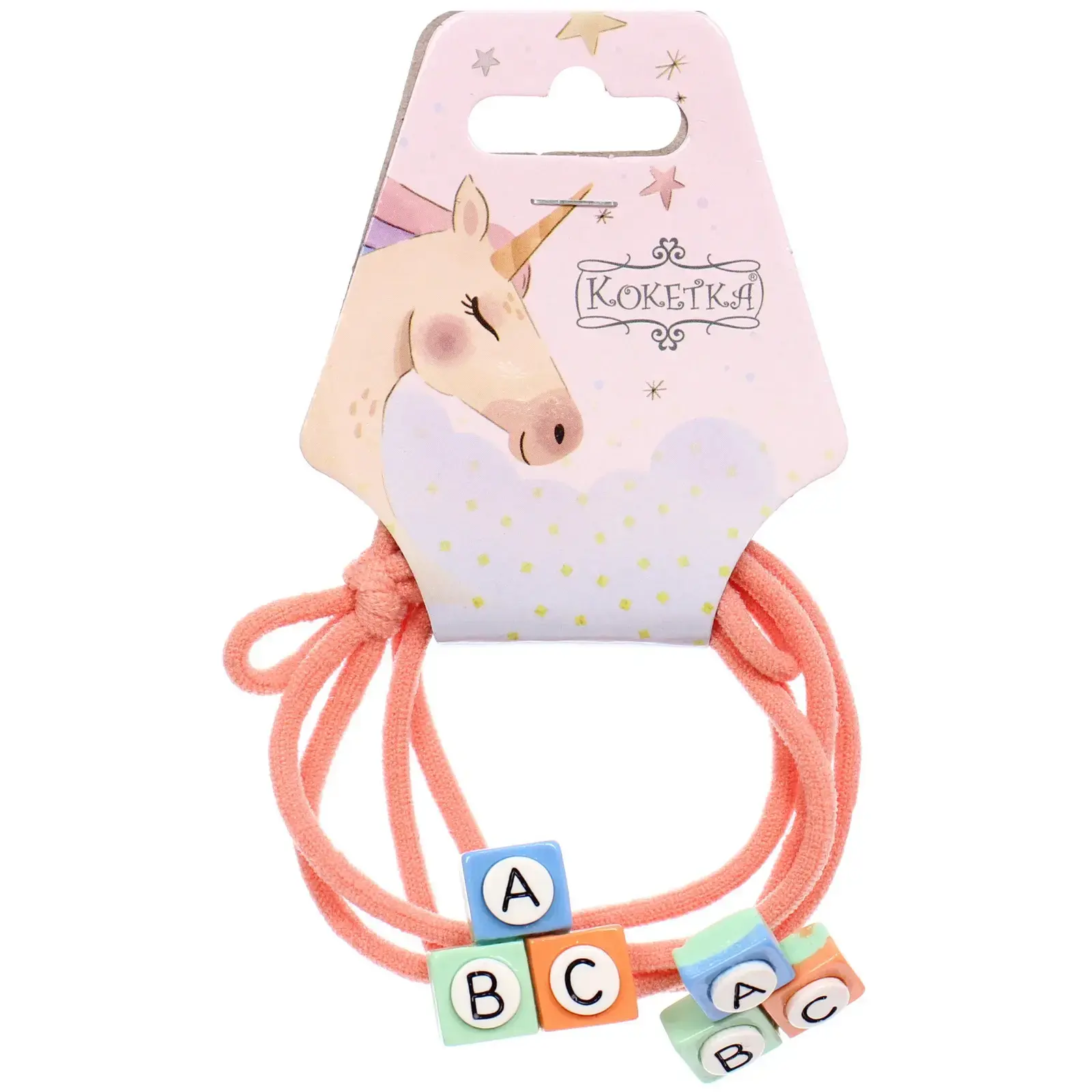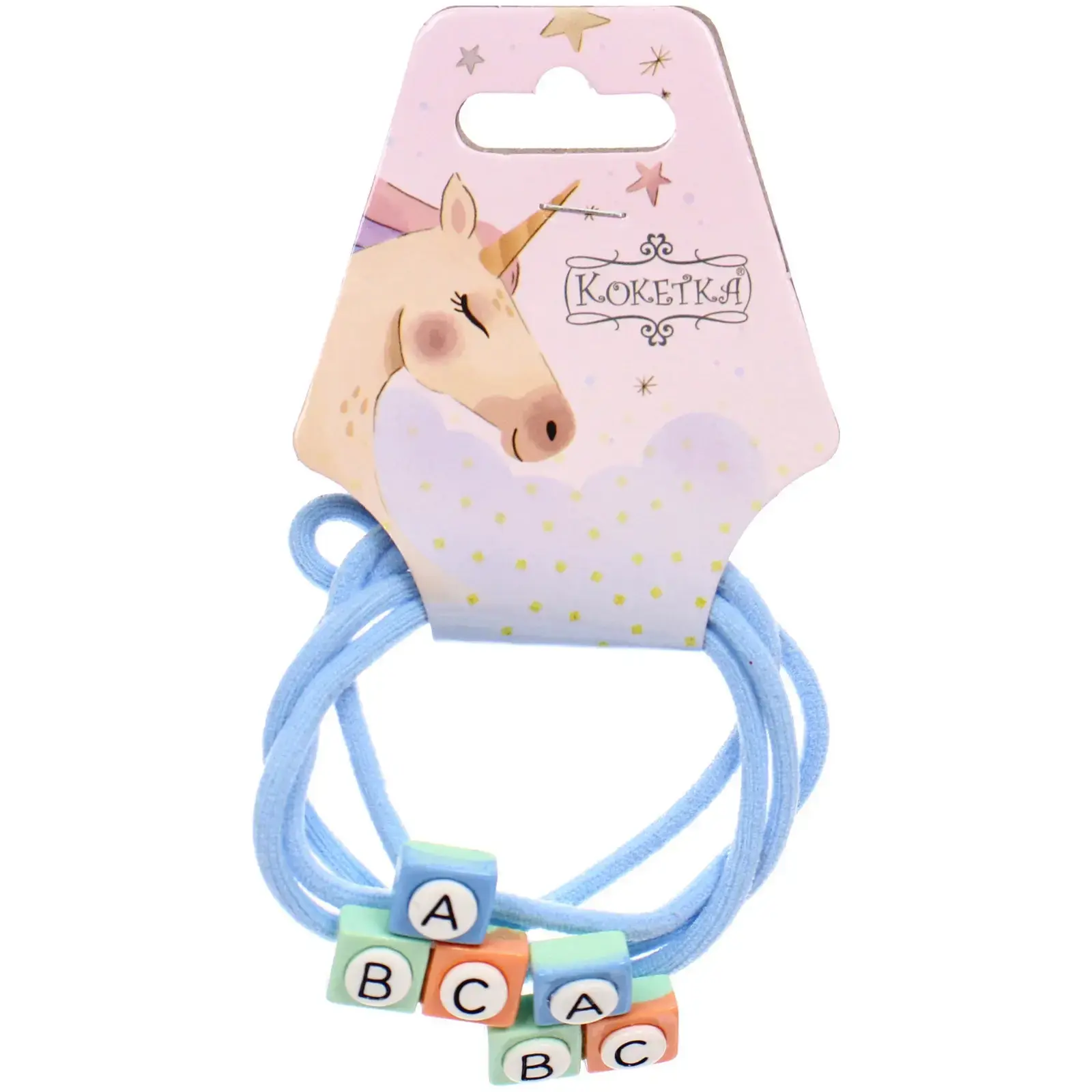 В упаковке вы найдете 2 резинки для волос, каждая из которых украшена кубиками с буквами «A», «B» и «C». Эти резинки не только функциональны, но и станут ярким акцентом в вашем образе. Упаковка оформлена в пастельных тонах с изображением единорога и звездами, что делает ее привлекательной для детей. Резинки легко хранить и удобно брать с собой в дорогу.