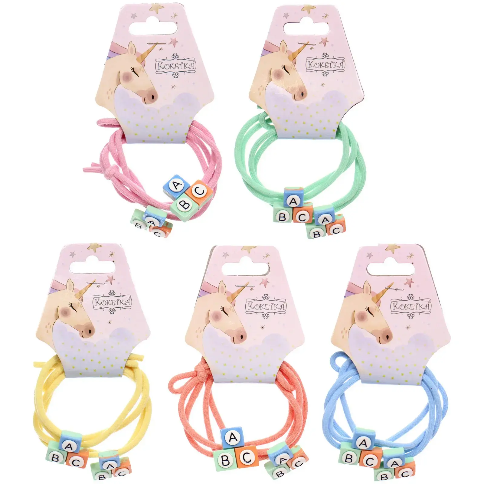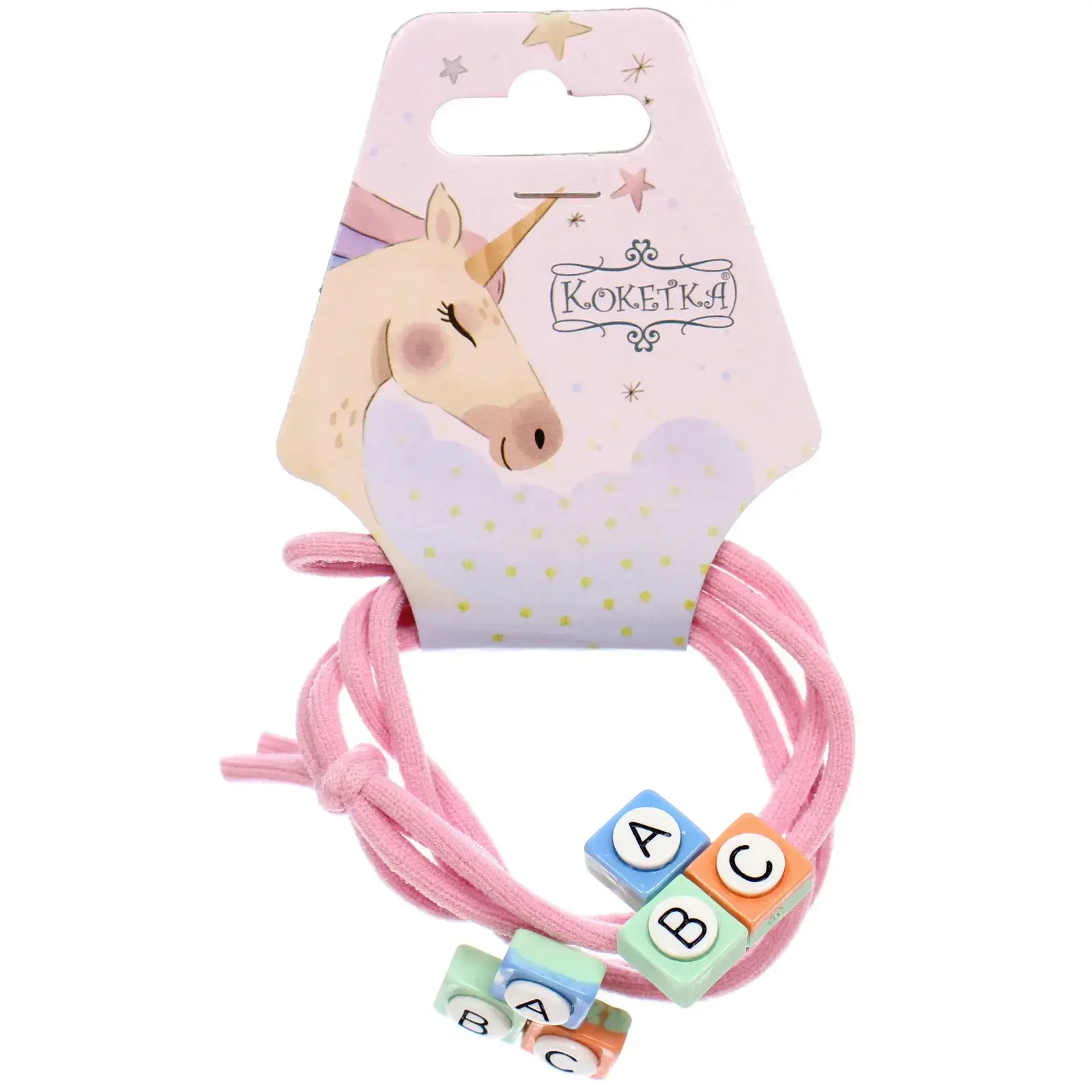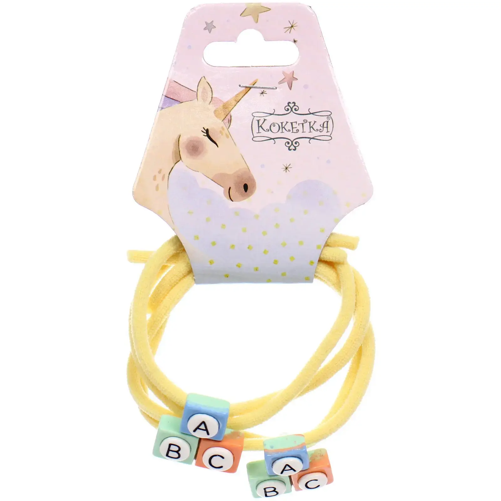 В упаковке вы найдете 2 резинки для волос, каждая из которых украшена кубиками с буквами «A», «B» и «C». Эти резинки не только функциональны, но и станут ярким акцентом в вашем образе. Упаковка оформлена в пастельных тонах с изображением единорога и звездами, что делает ее привлекательной для детей. Резинки легко хранить и удобно брать с собой в дорогу.