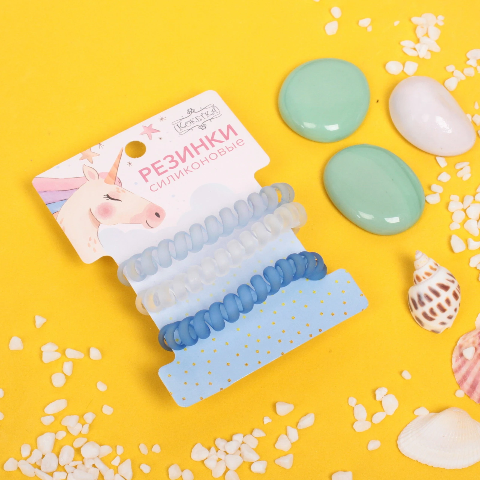 В данный набор входит 3 спиральные резинки приятного голубого цвета. Диаметр каждого изделия составляет 5,5 см, что является оптимальным размером для создания хвостов и кос различной сложности. Товар поставляется на красочном блистере с дизайном «Единорог», благодаря чему комплект может стать приятным и полезным подарком для ребенка или близкого человека.