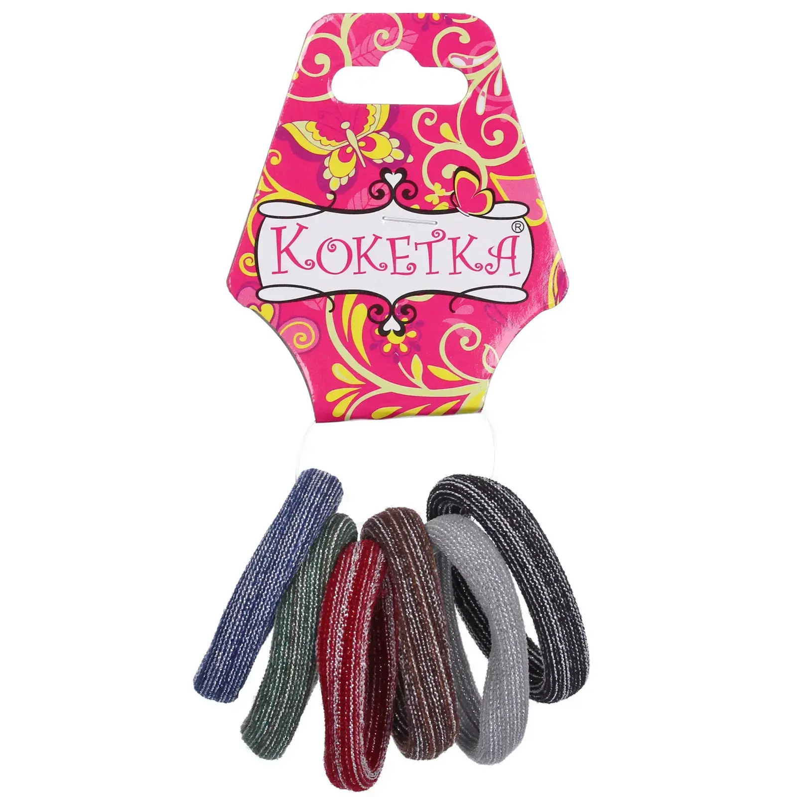 Каждая упаковка содержит 6 резинок в различных цветах: голубом, бежевом, сером, красном, бордовом и черном. Яркий дизайн упаковки с узорами и логотипом бренда Кокетка делает товар привлекательным для покупателей. Удобное отверстие для подвешивания позволяет легко демонстрировать товар в магазине.