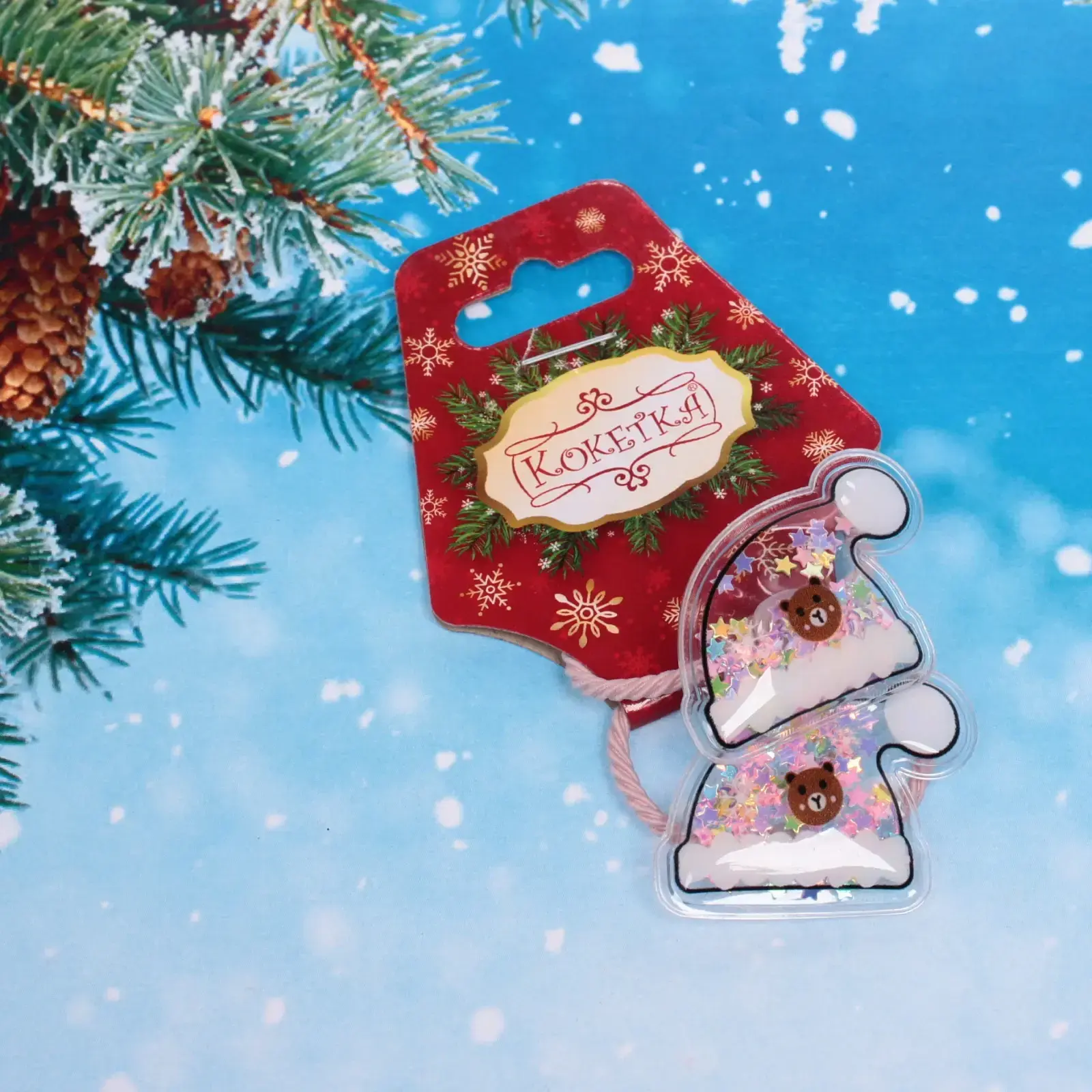Каждая резинка имеет диаметр 5 см, что делает их подходящими для волос любой длины. Они упакованы в стильную карточку с изображением зимних элементов, что подчеркивает их праздничный характер. Резинки легко комбинируются с другими аксессуарами, создавая уникальные образы для вашего ребенка.