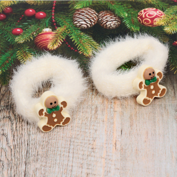 Подарите своим детям радость и стиль с резинками для волос «КАРОЛИНА - Пряник». Эти милые аксессуары не только украсят прическу, но и обеспечат надежную фиксацию волос. Пушистый материал и яркий дизайн в виде имбирных человечков с зелеными бантиками создадут праздничное настроение и сделают каждую прическу уникальной.