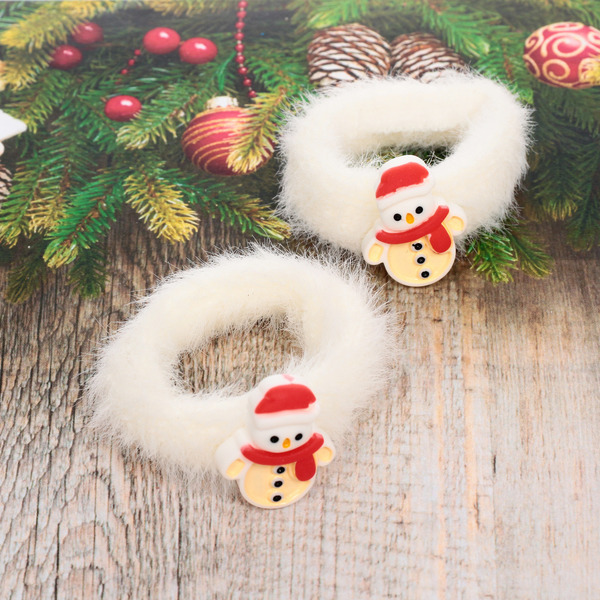 Создайте новогоднее настроение с помощью этих очаровательных резинок для волос! Они не только добавят яркий акцент в образ вашей девочки, но и обеспечат надежную фиксацию волос. Пушистый материал и забавные снеговики с красными шарфами делают эти резинки идеальными для праздничных мероприятий и повседневного использования.
