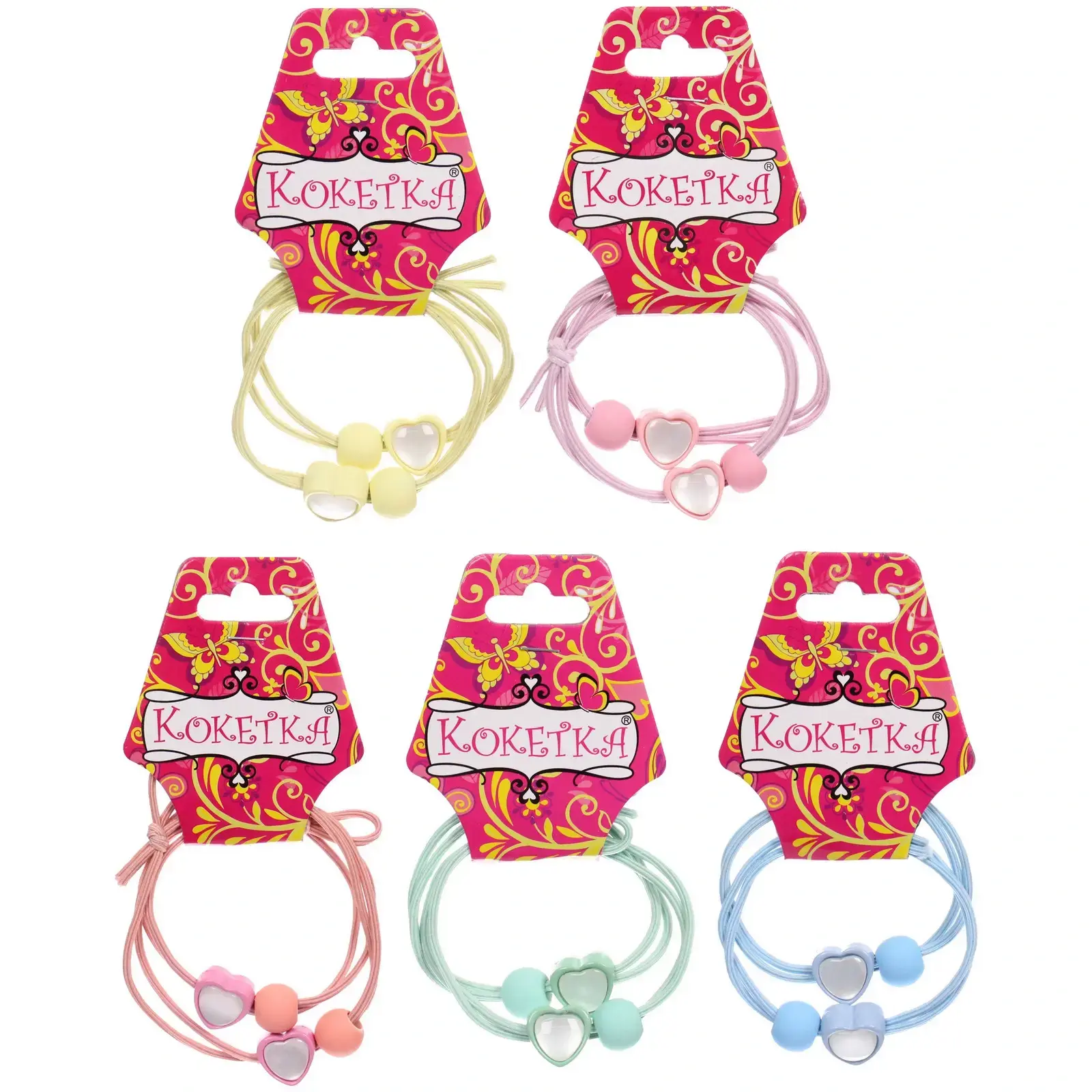 В комплект входят две резинки диаметром 5.5 см, выполненные в миксе из пяти ярких цветов: желтого, розового, мятного, голубого и светло-розового. Каждая резинка украшена декоративными элементами в форме сердечек и шариков, что делает их особенно привлекательными для детей. Упаковка оформлена в ярком дизайне, что также добавляет эстетической ценности продукту.