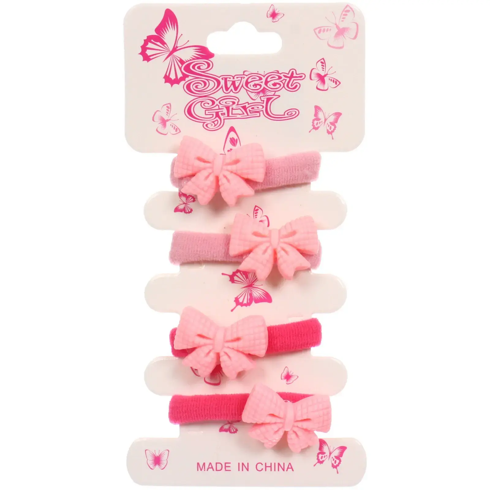 Каждая резинка имеет длину 3 см и выполнена из прочного пластика и текстиля, что обеспечивает комфортное ношение. Набор представлен в упаковке с изображением бабочек и надписью «Sweet Girl», что добавляет ему привлекательности. Эти резинки для волос — отличный выбор для создания стильных и удобных причесок для ваших маленьких модниц.