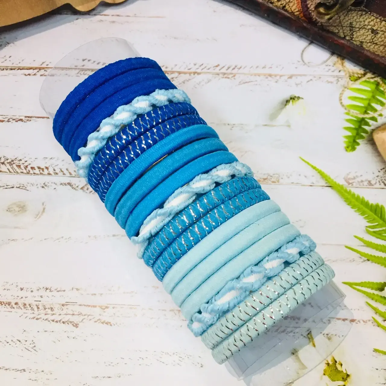 В наборе 18 резинок различных оттенков голубого и синего цвета, диаметром 4 см. Они имеют стандартный размер, что делает их универсальными для использования в любых прическах. Резинки легко надеваются и снимаются, не вызывая дискомфорта. Это идеальный аксессуар для создания как простых, так и сложных причесок, позволяющий экспериментировать с образом.