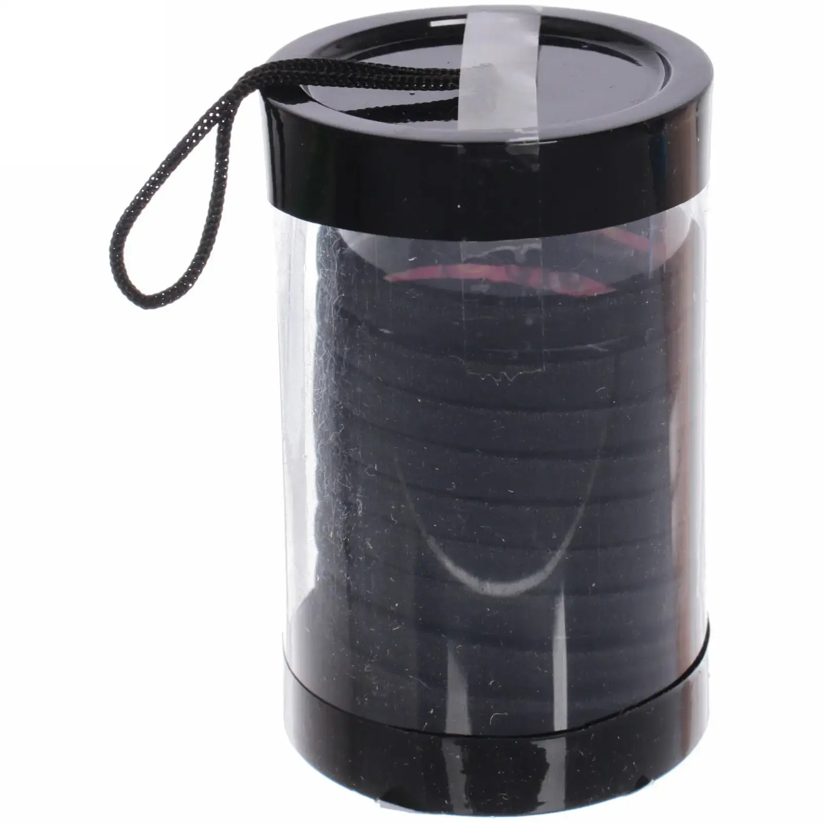 Каждая модница должна иметь в своем гардеробе такие резинки для волос! Эти аксессуары не только практичны, но и добавляют изюминку в любой образ. Резинки выполнены в классическом черном цвете, что делает их универсальными для любого стиля и повода. Упаковка в виде тубы содержит 9 штук, что позволяет всегда иметь под рукой необходимое количество резинок.