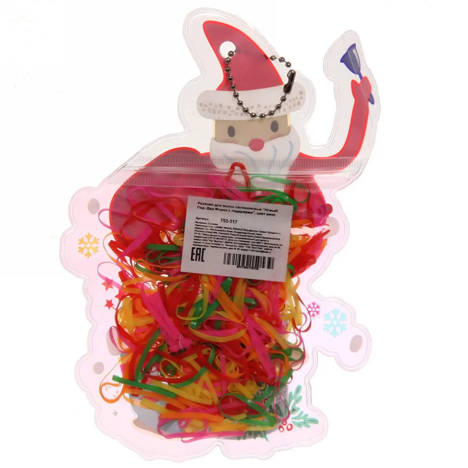Каждая резинка имеет размер 17,5 см в длину и 11 см в ширину, что делает их удобными для использования. Они выполнены из качественного силикона, который обеспечивает долговечность и эластичность. Праздничный дизайн в виде Деда Мороза с подарками добавляет веселья и радости в каждую прическу.