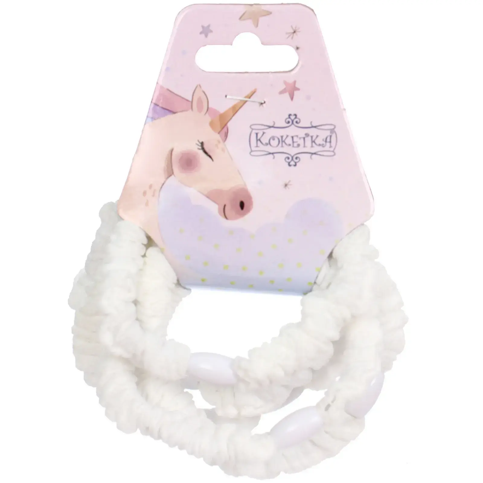 В наборе вы получите 5 резинок белого цвета диаметром 5,5 см. Каждая резинка украшена рюшечками и пластиковыми элементами, что придает им особый шарм. Упаковка оформлена в нежно-розовых тонах с изображением единорога, что делает этот набор отличным подарком для маленьких модниц. Не упустите возможность добавить в свой арсенал стильные и практичные аксессуары для волос!