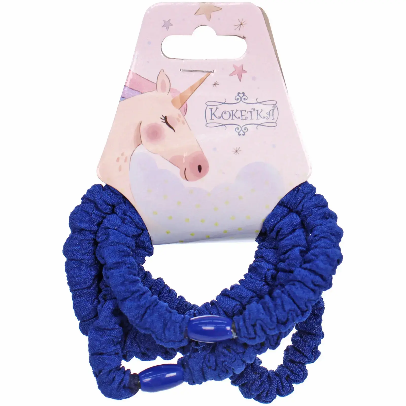 Размер каждой резинки составляет 5,5 см в диаметре, что делает их универсальными для использования. Ярко-синий цвет и текстурированная поверхность делают их заметными и привлекательными. Упаковка оформлена в игривом стиле, что делает этот набор отличным подарком для юных модниц.