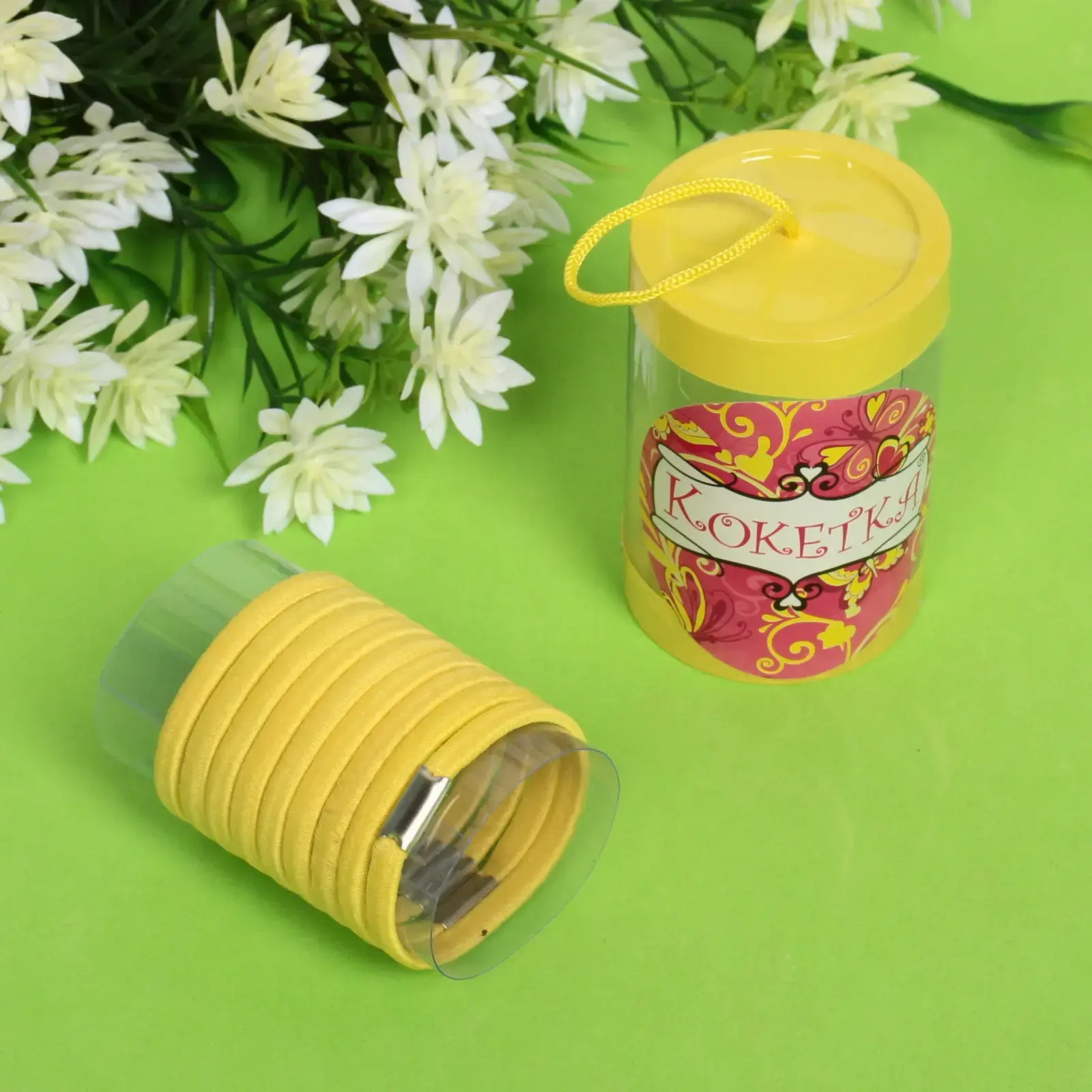 Каждая модница должна иметь в своем гардеробе такие резинки для волос! Эти аксессуары не только практичны, но и добавляют яркие акценты в любой образ. Резинки выполнены в желтом цвете, что делает их универсальными для различных стилей и случаев. Удобная упаковка в виде тубы позволяет легко хранить и переносить резинки, что экономит ваше время и пространство.