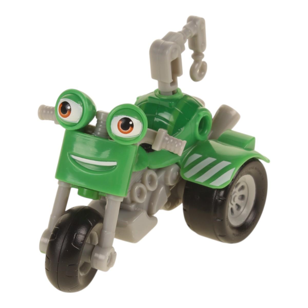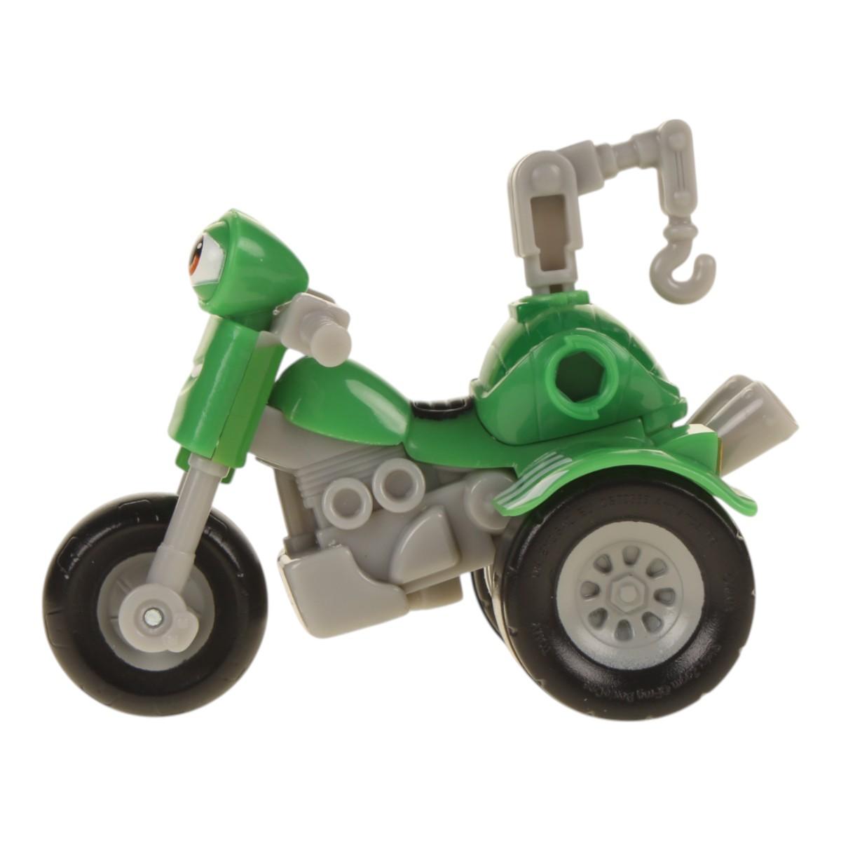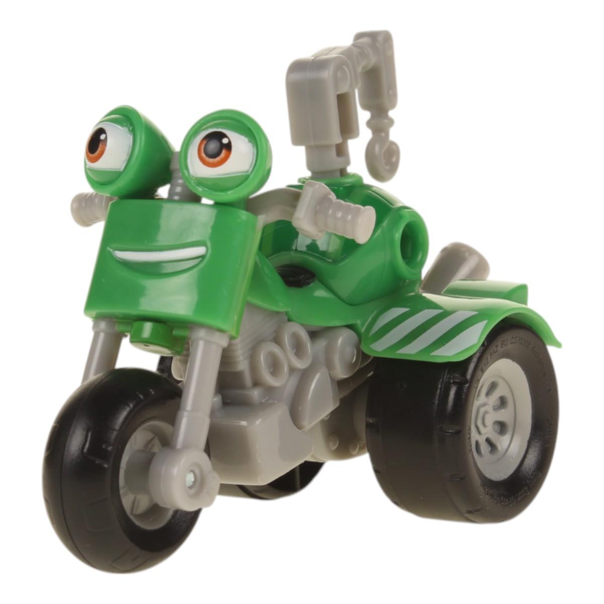 Игровой набор предназначен для активной игры и может использоваться как в помещении, так и на улице. Мотоцикл имеет дружелюбный дизайн с улыбающимся лицом и большими глазами, что делает его привлекательным для детей. Ребенок сможет легко управлять мотоциклом, развивая свои навыки координации и моторики.