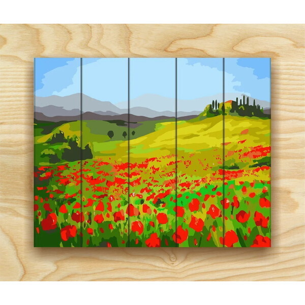Набор подходит для всех, кто хочет попробовать себя в живописи, независимо от уровня подготовки. Просто следуйте инструкциям и раскрашивайте по номерам, чтобы получить красивую картину с пейзажем, на котором изображены яркие маки на фоне зелёного поля и голубого неба. Размер картины 40х50 см позволяет легко разместить её в любом интерьере, добавляя яркие акценты в ваше пространство.