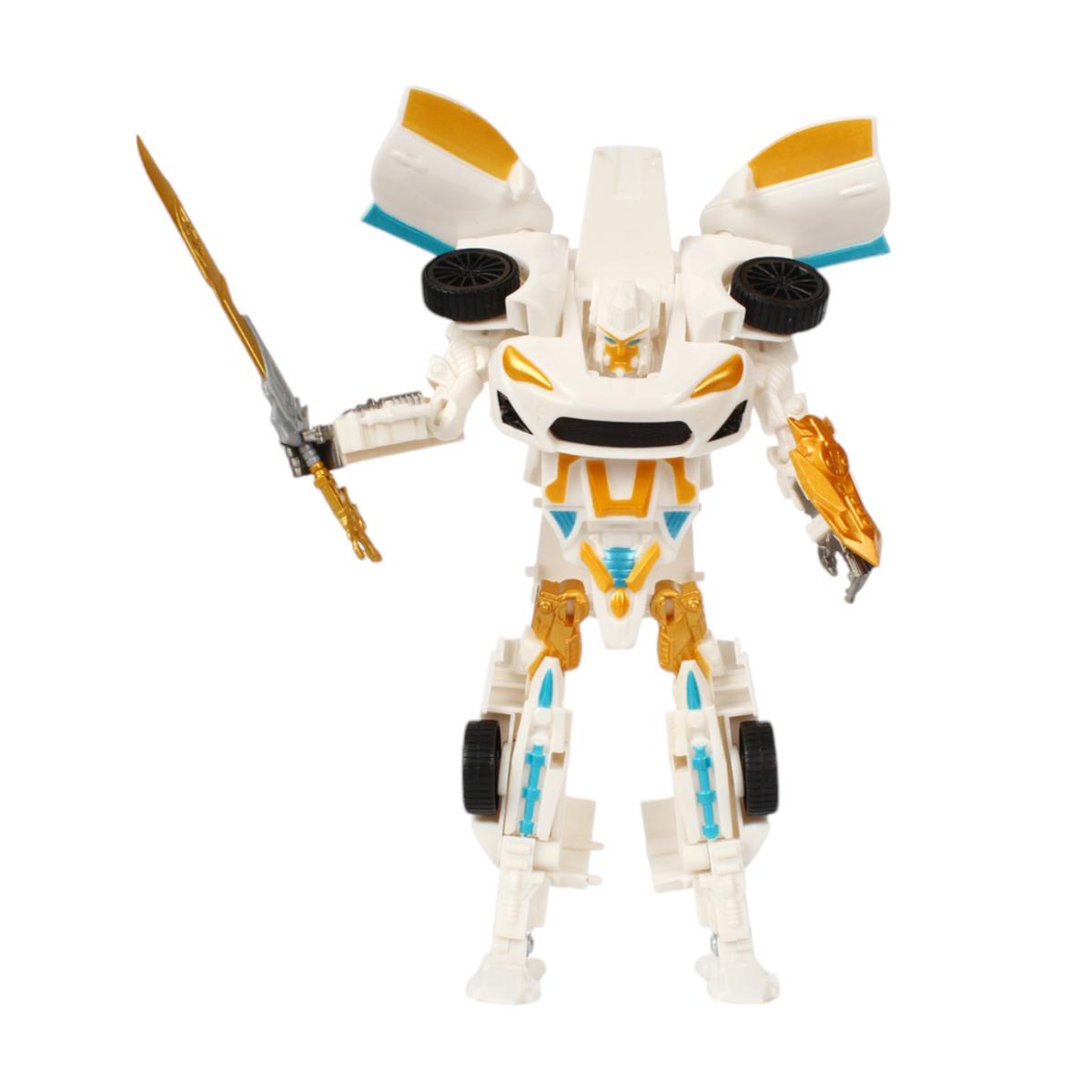 Этот функциональный робот-трансформер в белом цвете с золотыми и голубыми акцентами принесёт радость и вдохновение вашему ребенку. Идеально подходит для игры и коллекционирования, развивает фантазию и моторные навыки.