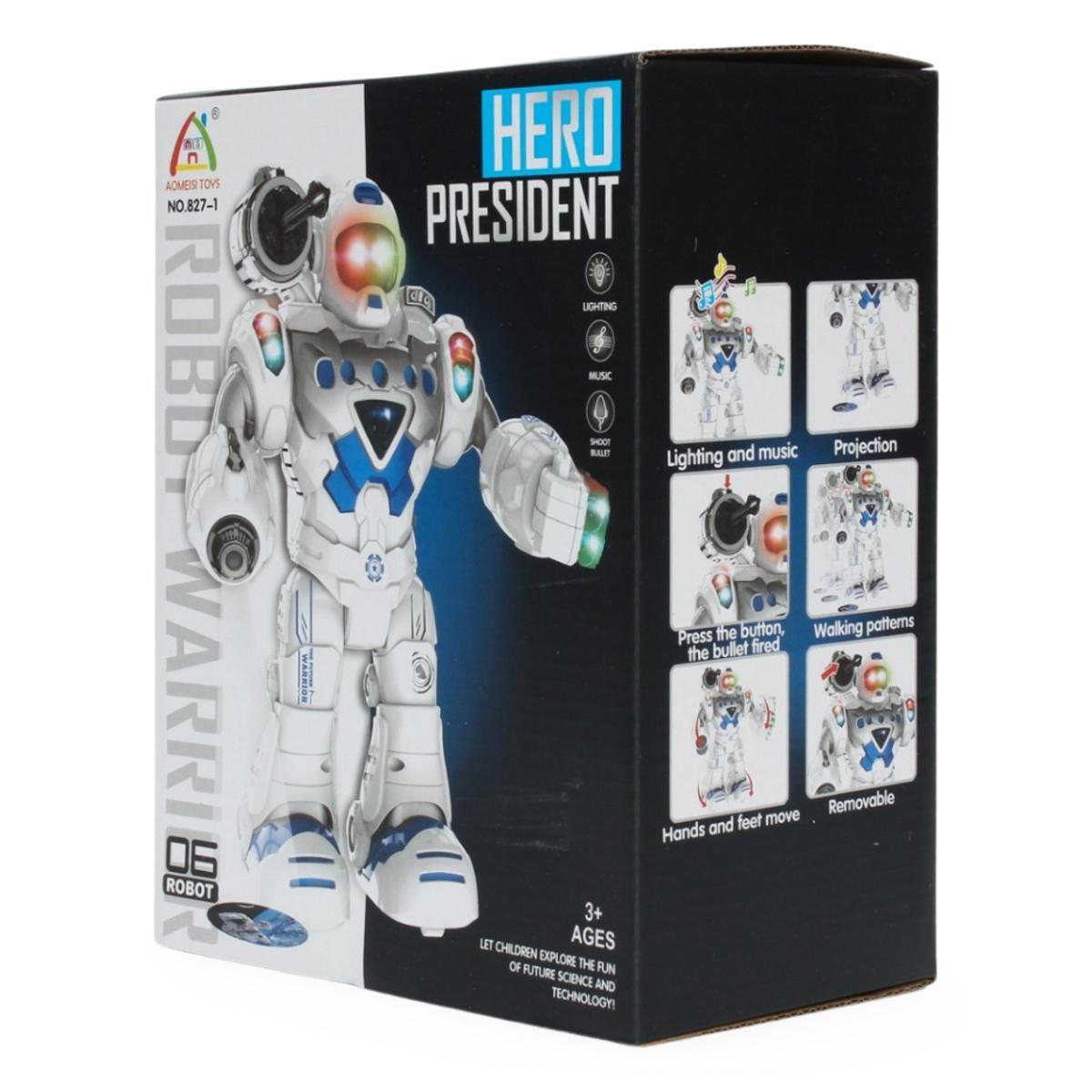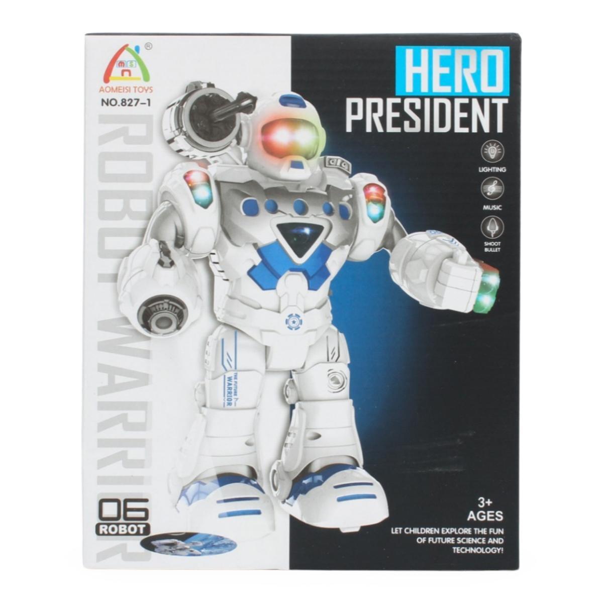 Робот-воин 'HERO PRESIDENT' с подсветкой и стрельбой, пластик, белый/синий, 19.5х11х23.5см
