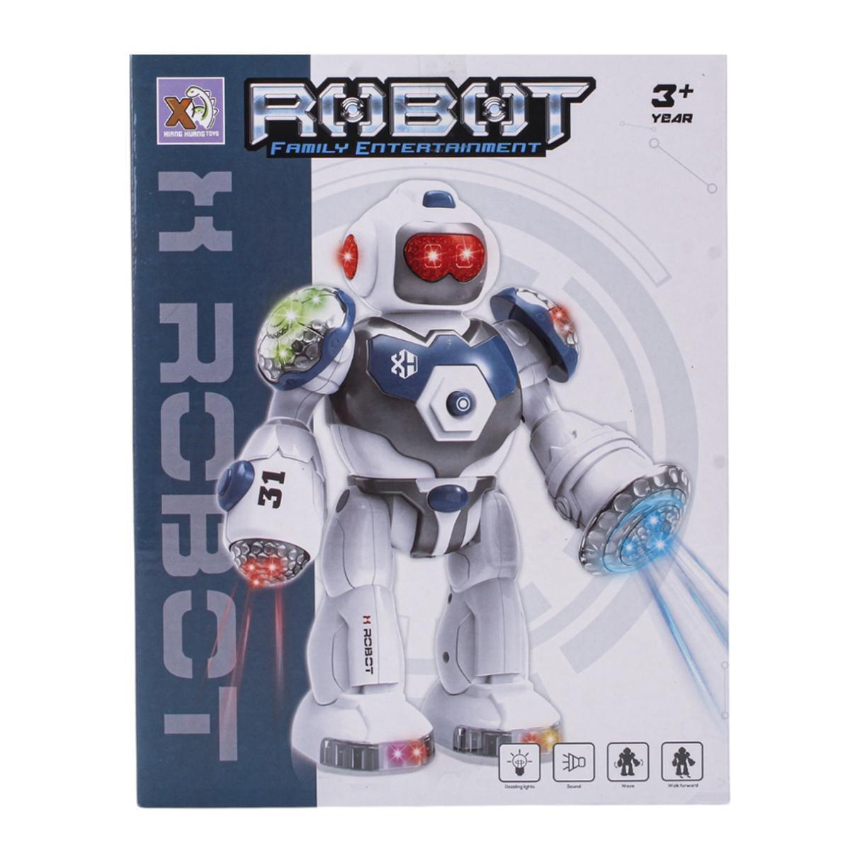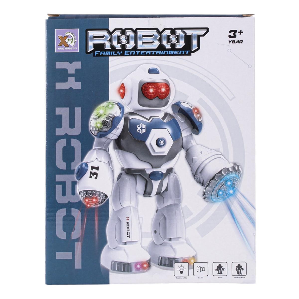 Робот оснащен множеством функций, включая световые и звуковые эффекты, что делает его использование еще более увлекательным. Он может двигаться вперед, что добавляет динамики в игры. Этот робот идеально подходит для детей, которые любят активные и развивающие игрушки. Он станет отличным спутником в играх как дома, так и на улице.