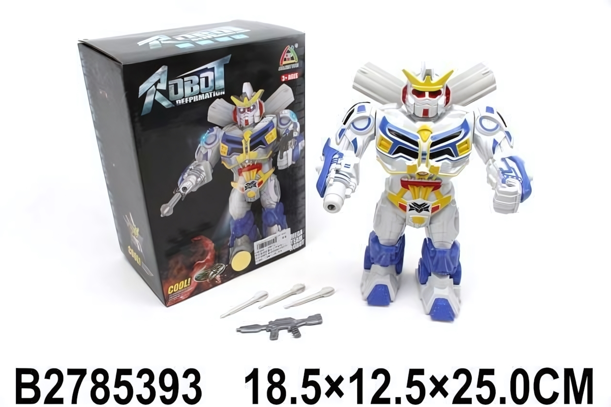 Этот робот сочетает в себе яркий внешний вид, увлекательный функционал и надежность. Он изготовлен из качественного пластика, что гарантирует долговечность даже при активном использовании. Размеры игрушки (25х18.5х12.5 см) делают ее удобной для игры как дома, так и на улице.
