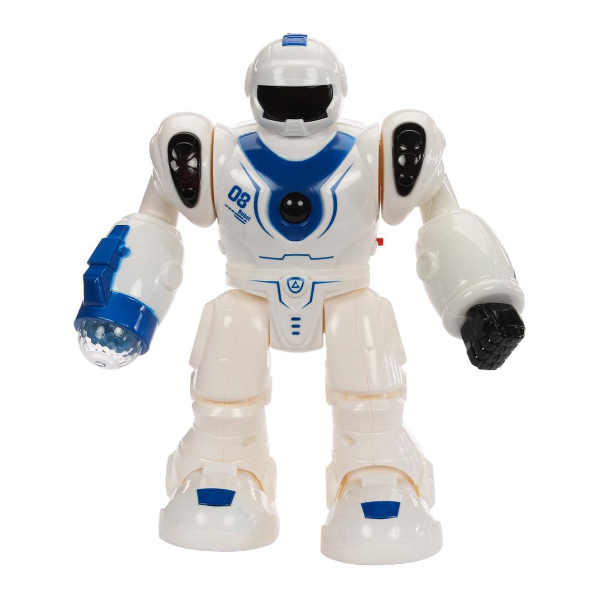 Размер упаковки составляет 18,0 * 8,0 * 21,0 см, что делает его удобным для хранения и транспортировки. Робот выполнен в белом цвете с голубыми и черными элементами, что придает ему стильный и современный вид. Обратите внимание, что элементы питания в комплект не входят, поэтому вам потребуется приобрести их отдельно.