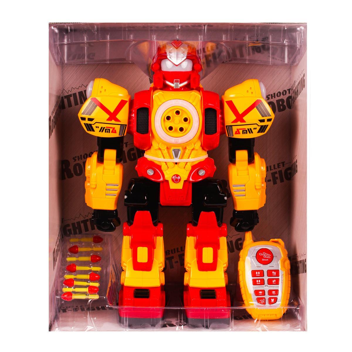 Погрузитесь в мир захватывающих сражений с этим динамичным роботом, оснащенным пультом дистанционного управления. Яркий дизайн в красно-желтых тонах и реалистичные светозвуковые эффекты делают игру еще более увлекательной. Робот умеет двигаться вперед, назад, поворачивать влево и вправо, а также стрелять пульками, что позволяет разыгрывать разнообразные боевые сценарии.