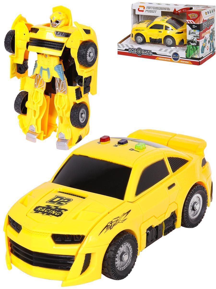 Робот трансформер "Робобиль-1", 18см, жёлтый, звук, батарейки в комплекте