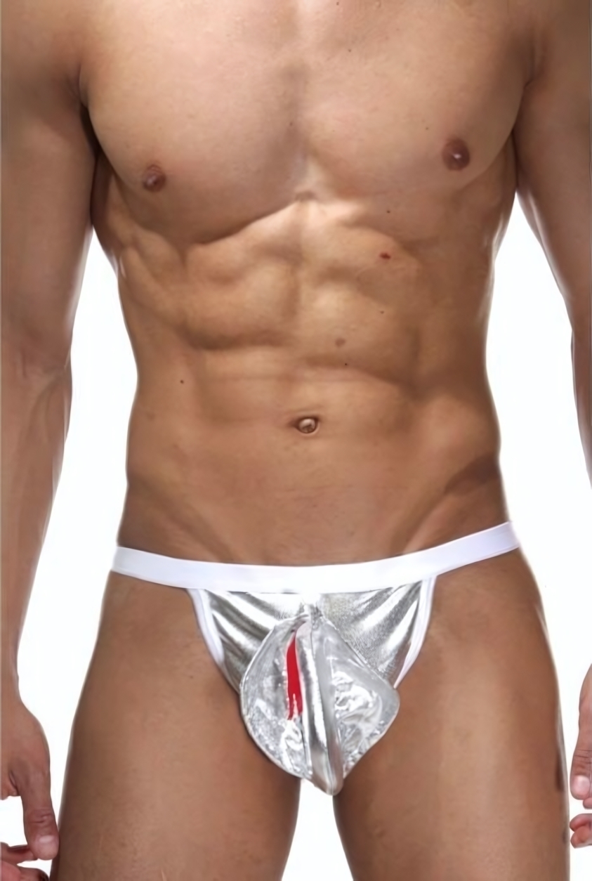 Трусы мужские стринги эротический костюм с коброй серебристого цвета, стрейч, размер L-XL