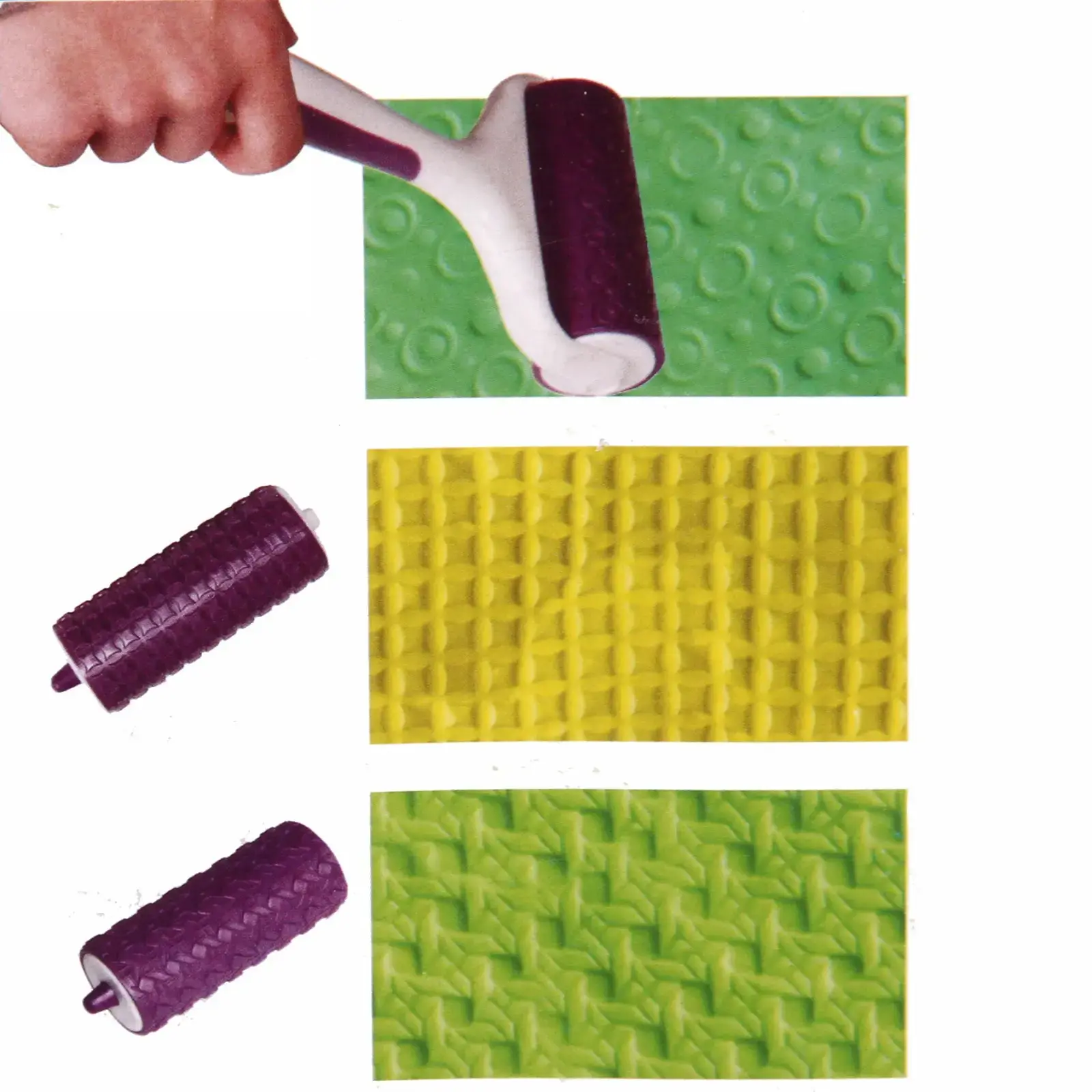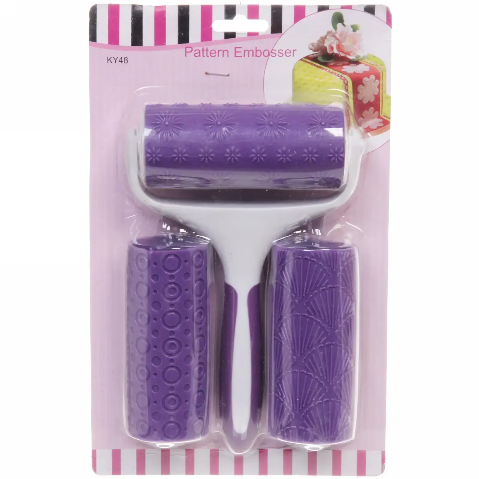 Валик для теста «Pattern Embosser» с 3 насадками, 10,5 см, фиолетовый, пластик