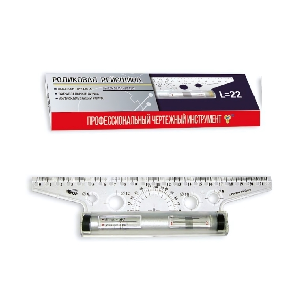 Роликовая рейсшина 'Пчелка' станет надежным помощником в создании точных чертежей. Благодаря металлическому ролику и прозрачному пластиковому корпусу вы получаете идеальные параллельные линии без особых усилий.