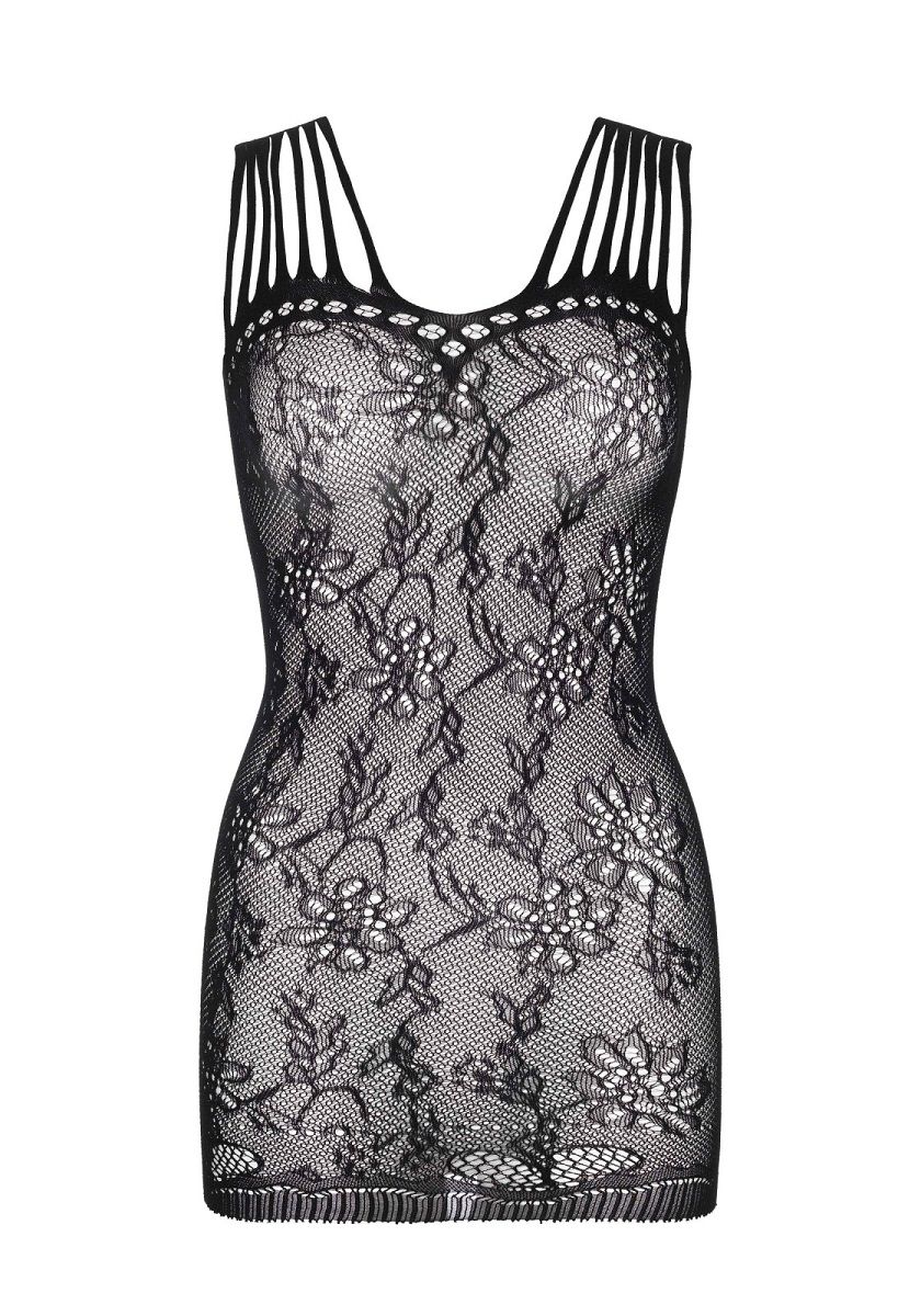 Ажурное мини-платье — это возможность почувствовать себя уверенно и привлекательно. Его полупрозрачная структура и цветочный узор создают игру света и тени, подчеркивая достоинства фигуры и добавляя образу загадочности. Облегающий крой обеспечивает комфорт, а черный цвет делает платье универсальным элементом интимного гардероба.