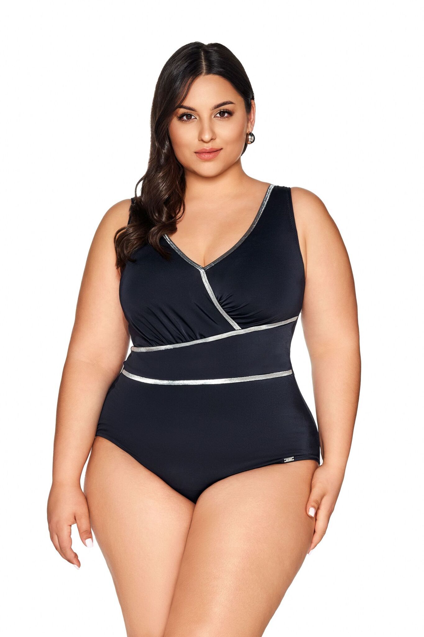 Купальник слитный "AVA" размер 80G, черный, с серебристым декором, комфортные широкие бретели