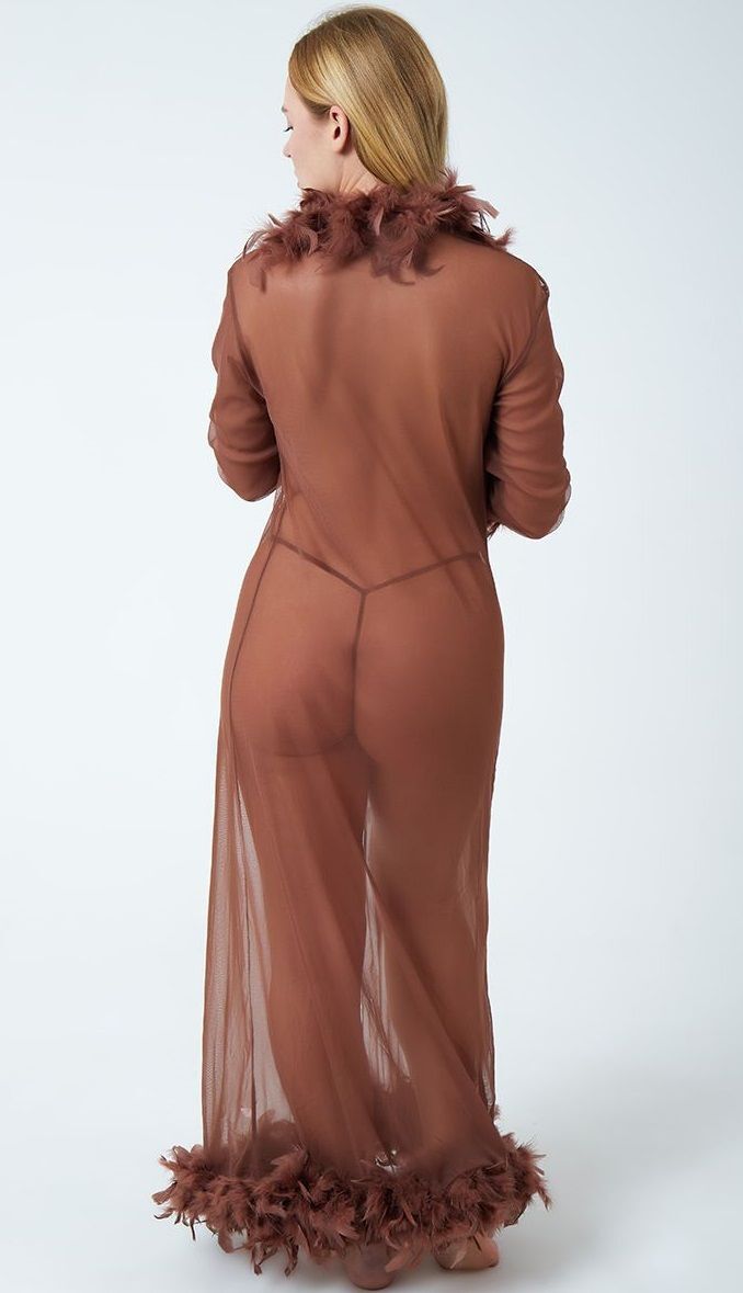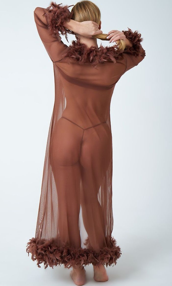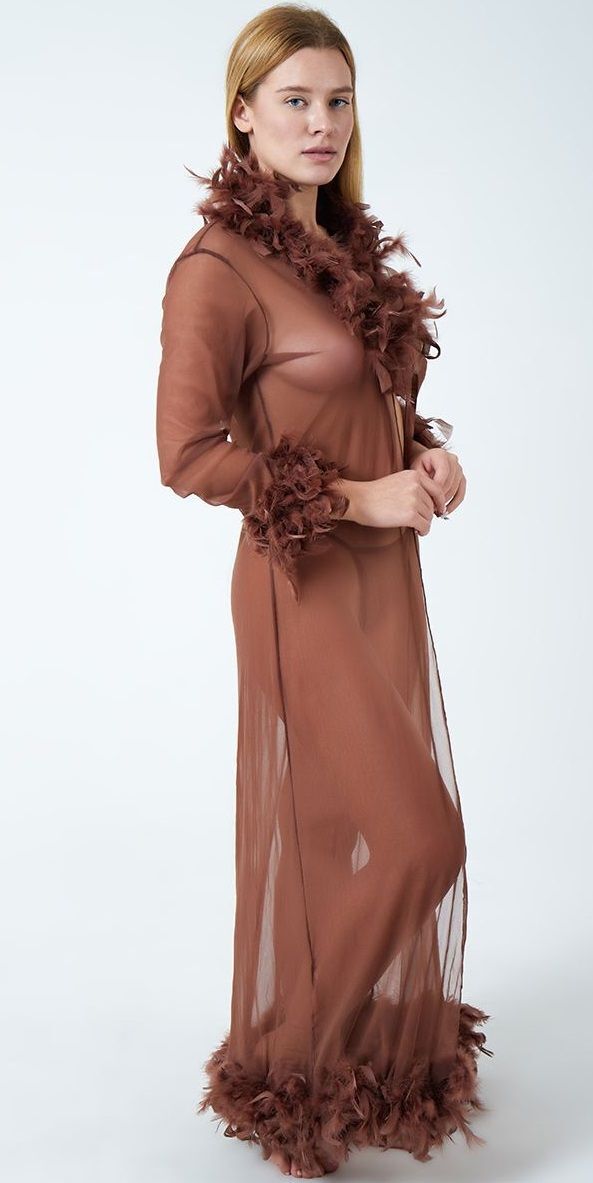 Роскошный пеньюар в пол с перьями
