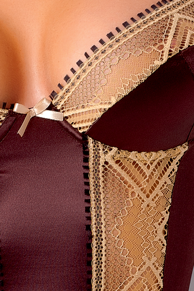Этот роскошный комплект в соблазнительном коричневом оттенке создан, чтобы подчеркнуть все достоинства вашей фигуры и стать центром внимания. Плотное облегание, изящные кружевные вставки и элегантные детали делают его идеальным выбором для создания незабываемого образа.