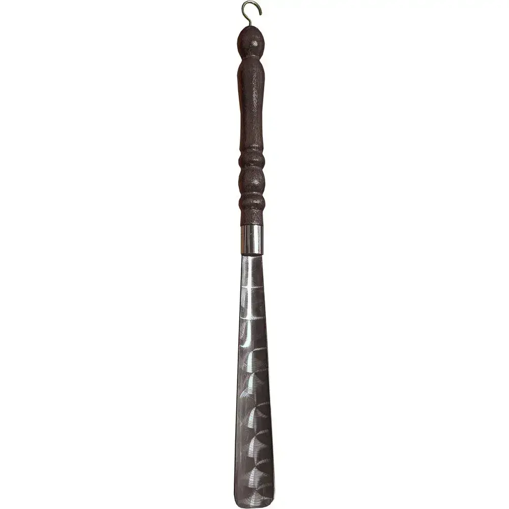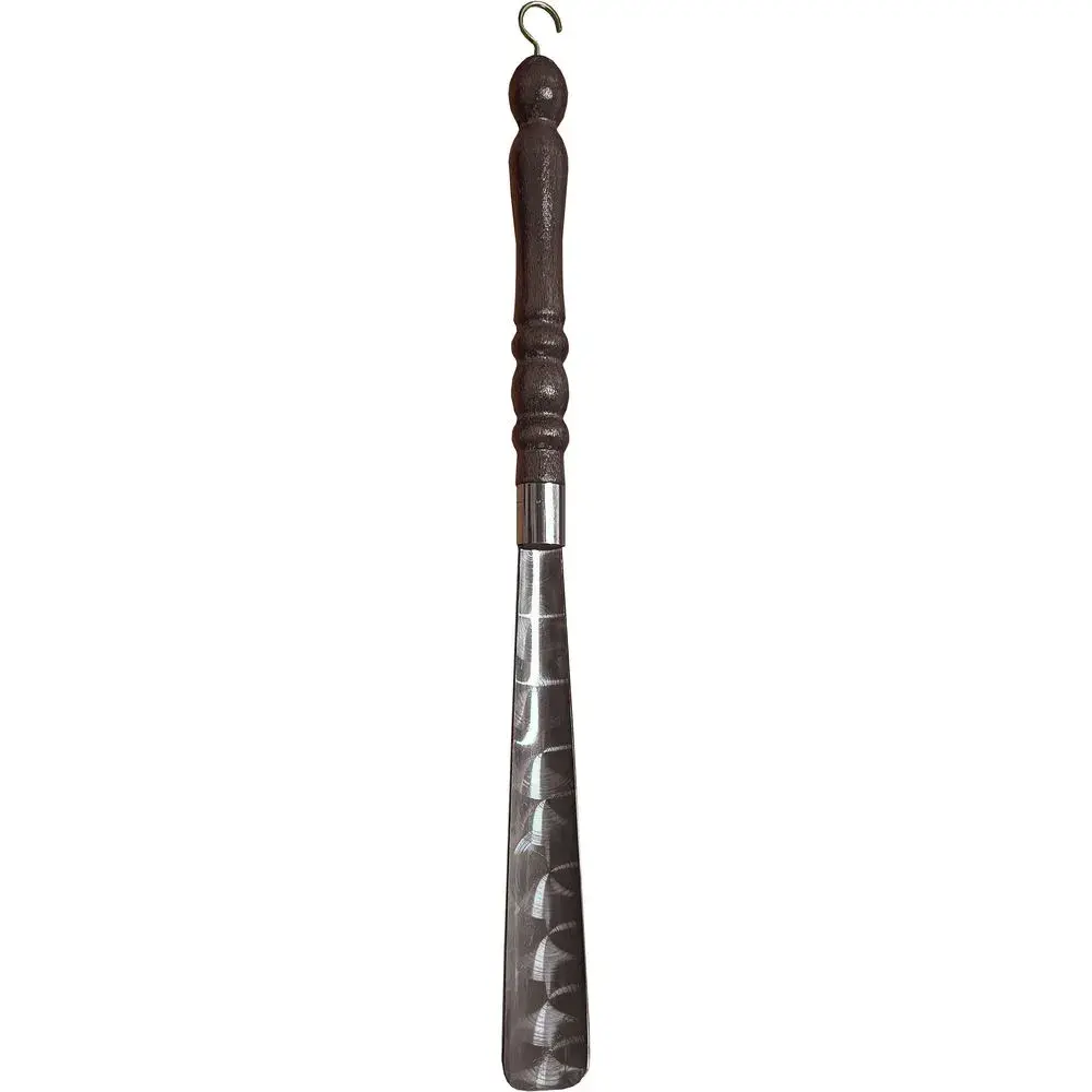 Изделие изготовлено из комбинации натурального дерева и металлического сплава. Гладкая полировка поверхности предотвращает повреждение обуви. Удобная форма с расширением в центре обеспечивает надежный захват даже мокрыми руками.