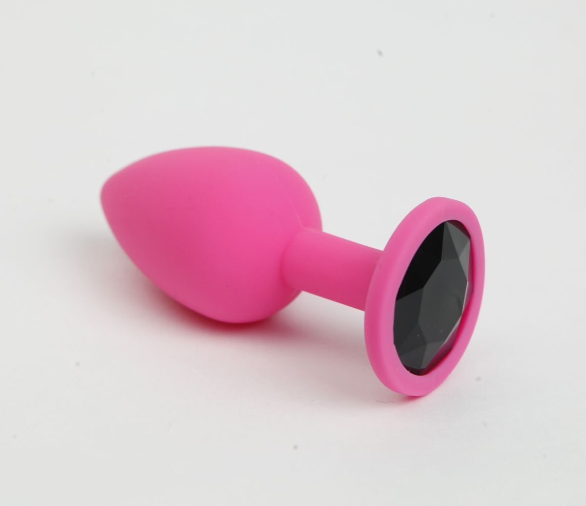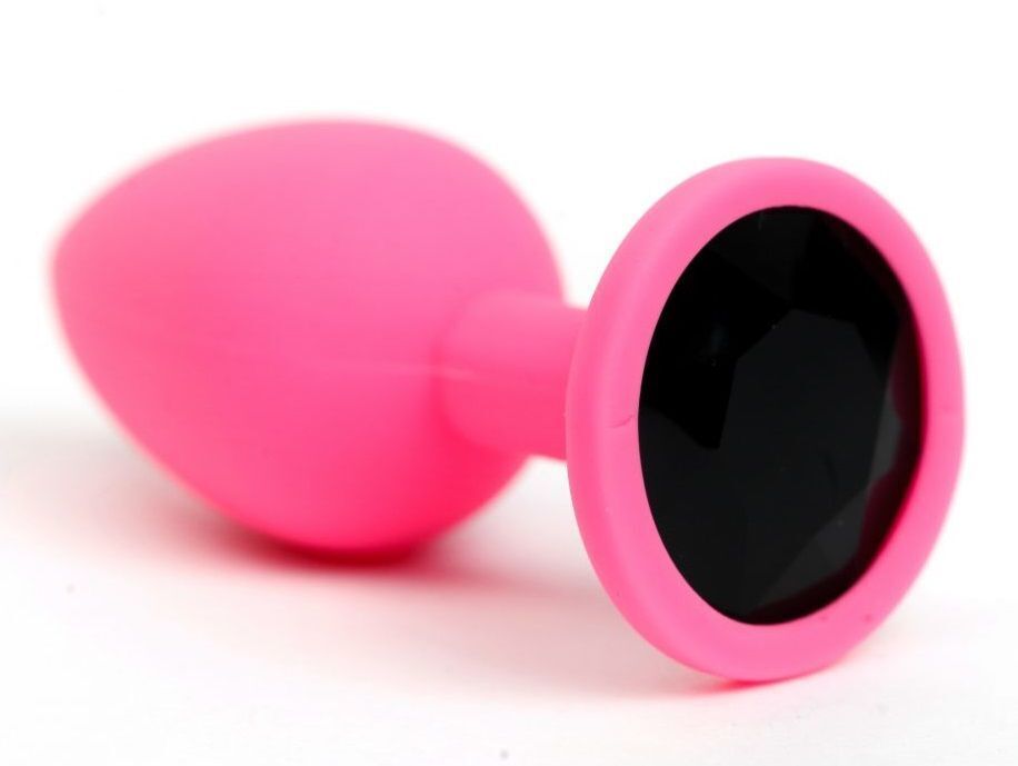 Розовая анальная пробка с черным стразом
