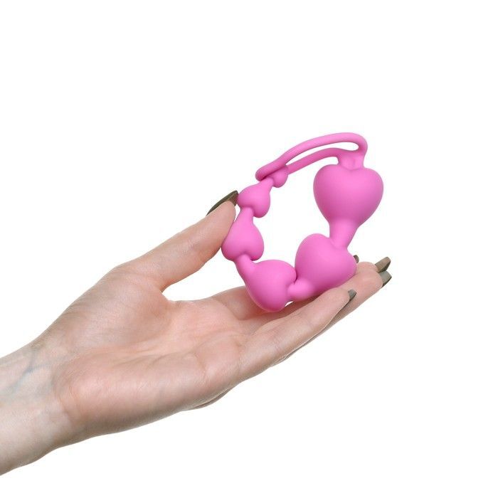 Цепочка идеально подходит как для новичков, так и для опытных пользователей. Рабочая длина составляет 14 см, что позволяет легко использовать её в любых условиях. Минимальный диаметр бусин — 1,1 см, а максимальный — 3,2 см, что обеспечивает разнообразие ощущений. Удобная ручка в виде сердечка позволяет легко управлять игрушкой, а гладкая текстура силикона делает её приятной на ощупь.