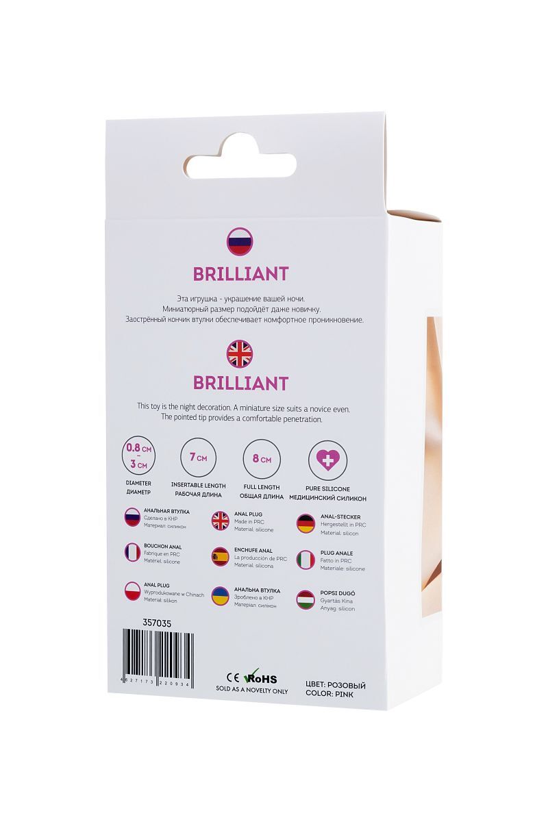 Что делает "Brilliant" особенной? Во-первых, материал из качественного силикона обеспечивает гибкость и гладкость, минимизируя дискомфорт и облегчая очистку после использования – просто промойте теплой водой с мягким мылом. Розовый цвет с прозрачным кристаллом на основании придает игрушке эстетичный вид, превращая ее в стильный аксессуар. Компактные габариты позволяют носить ее под одеждой для длительного эффекта, а отсутствие вибрации фокусирует на естественных ощущениях. Эта втулка долговечна, устойчива к износу и легко хранится в любом месте. Выбирая ее, вы получаете баланс между практичностью и удовольствием, без лишних сложностей.