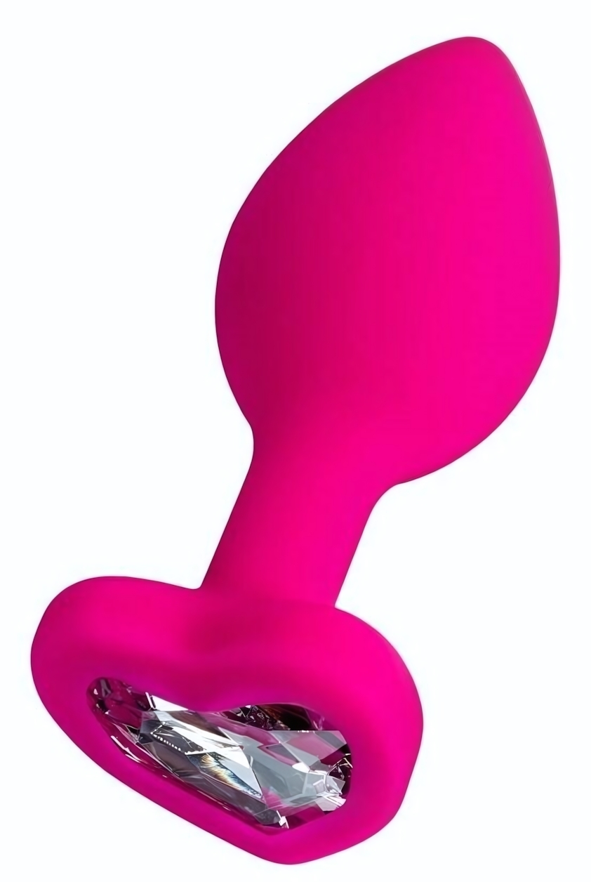 Анальная втулка 'Diamond Heart' с кристаллом, 8см, розовый силикон