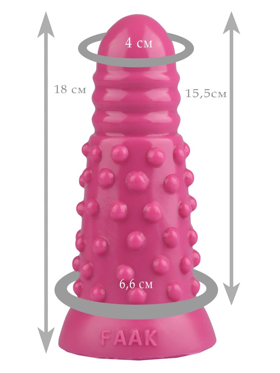 Общая длина изделия составляет 18 см, при этом рабочая (вводимая) длина – 15,5 см. Диаметр варьируется от минимальных 4 см в верхней части до 6,6 см в самой широкой части корпуса, что позволяет постепенно адаптироваться и достигать комфортного растяжения. Ярко-розовый цвет и глянцевая поверхность делают игрушку эстетически привлекательной.