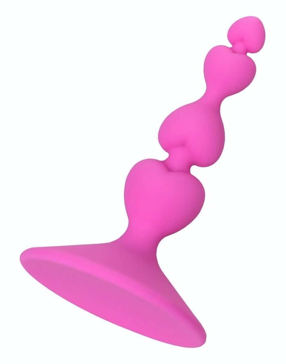 Розовая анальная пробка из силикона 8 см с рельефом сердечек и присоской, безопасный материал